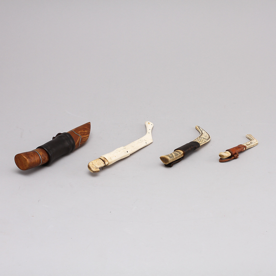 285852. KNIVE, 4 stk, 3 sameknive og Utterkniv.