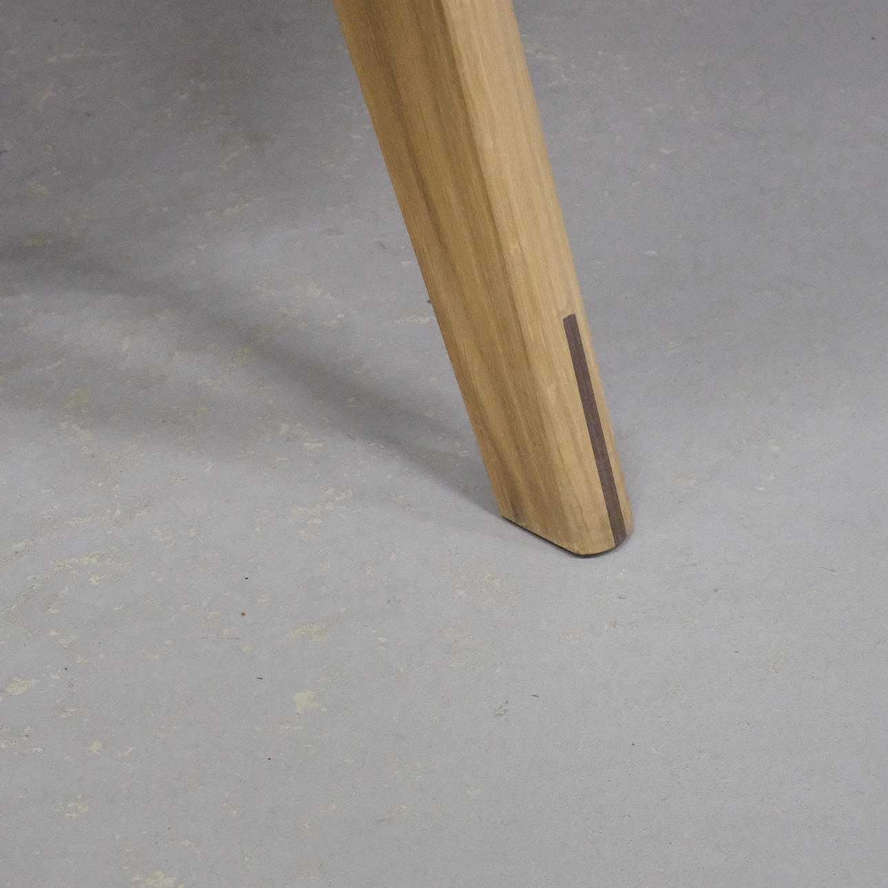 Brugsslitage, bordplade med plet, en stoletværstang med en lille revne.