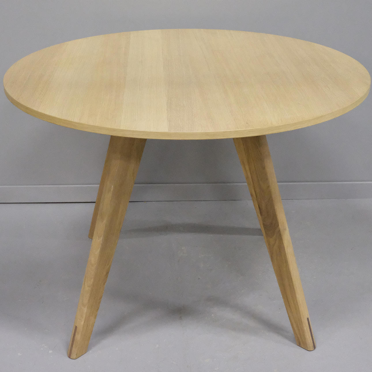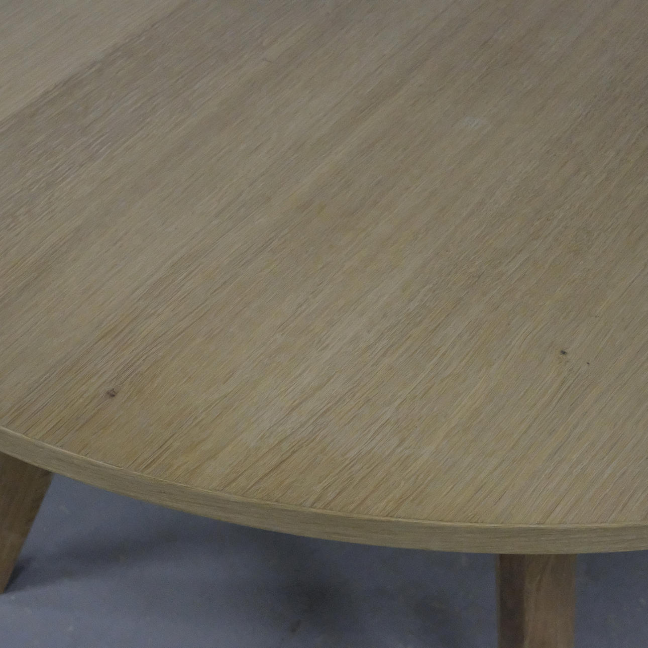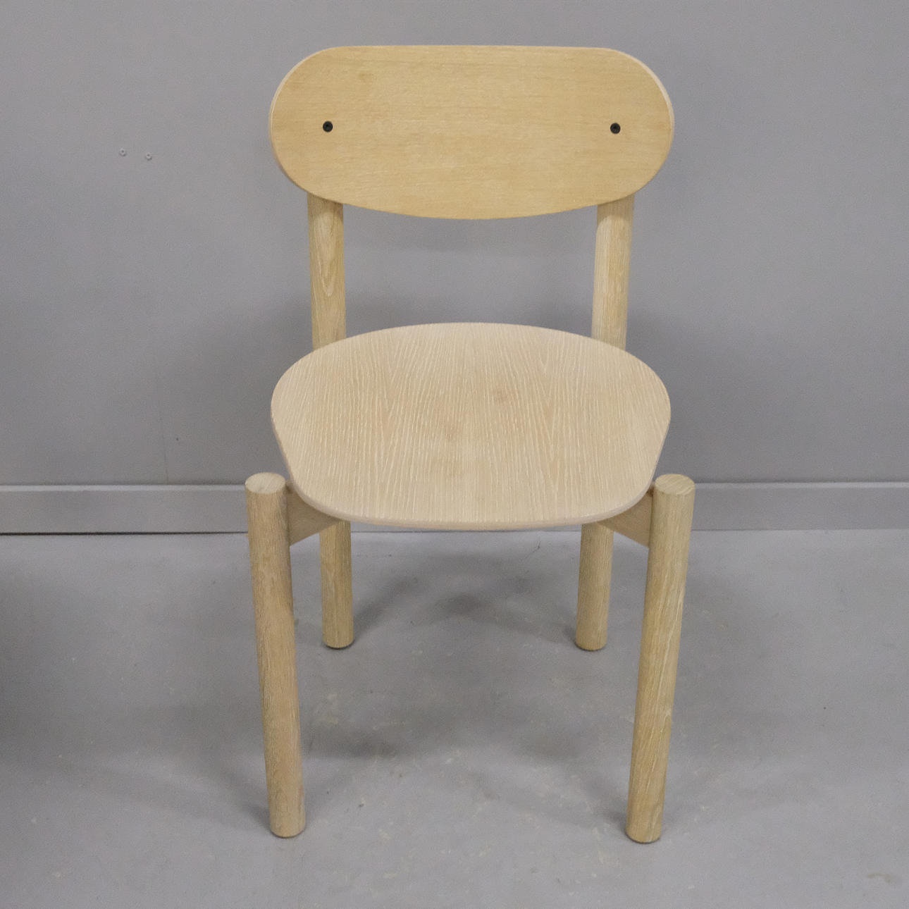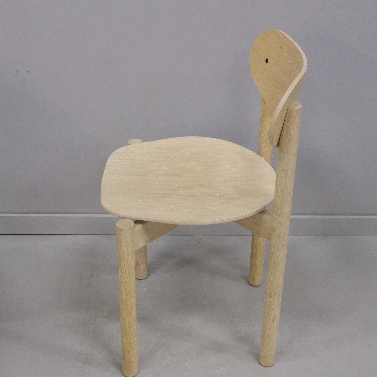 Nyt Mood spisebord, design Michael H. Nielsen, Bolia, hvidpigmenteret olieret eg, diameter 100cm, højde 80cm. Nypris ca 9.500 kr. og tilhørende to spisestuestole, højde 77cm.