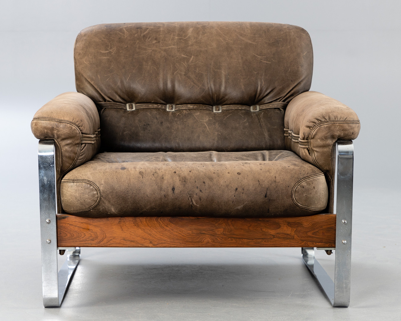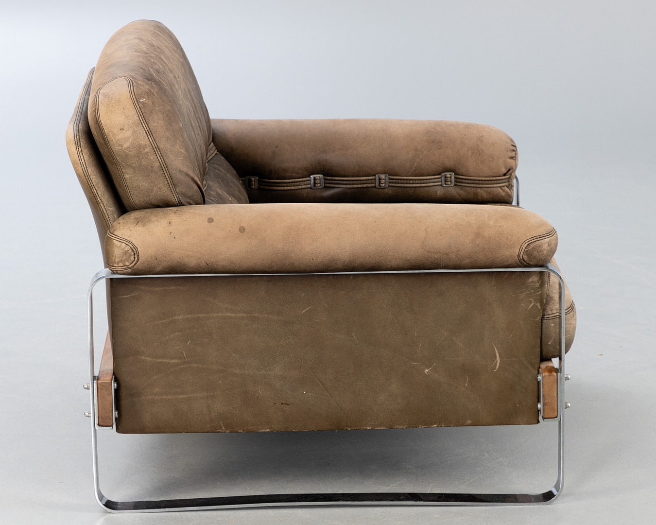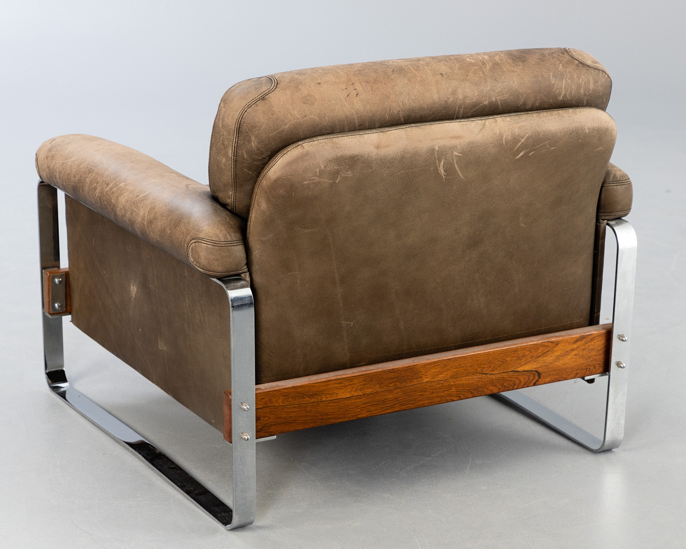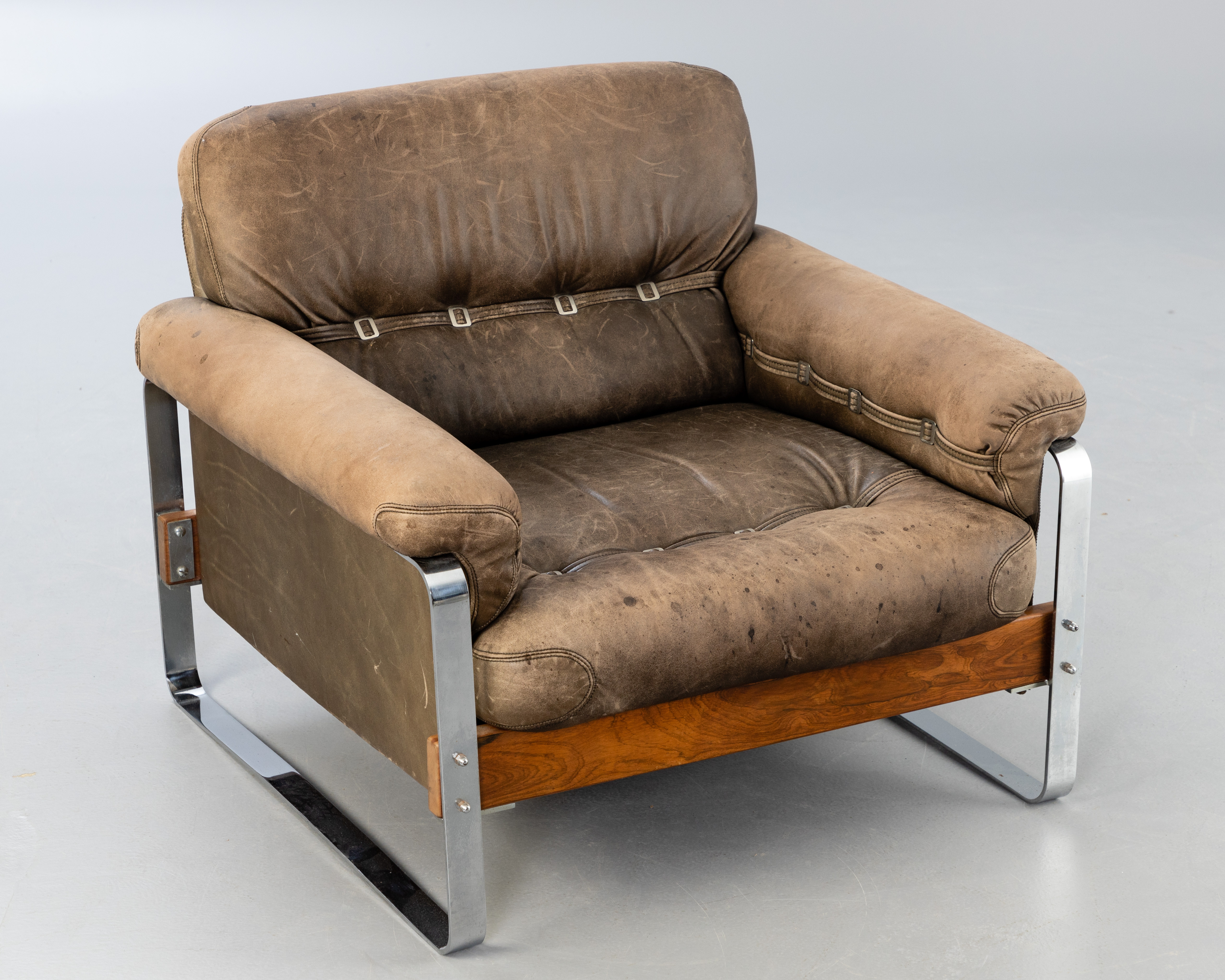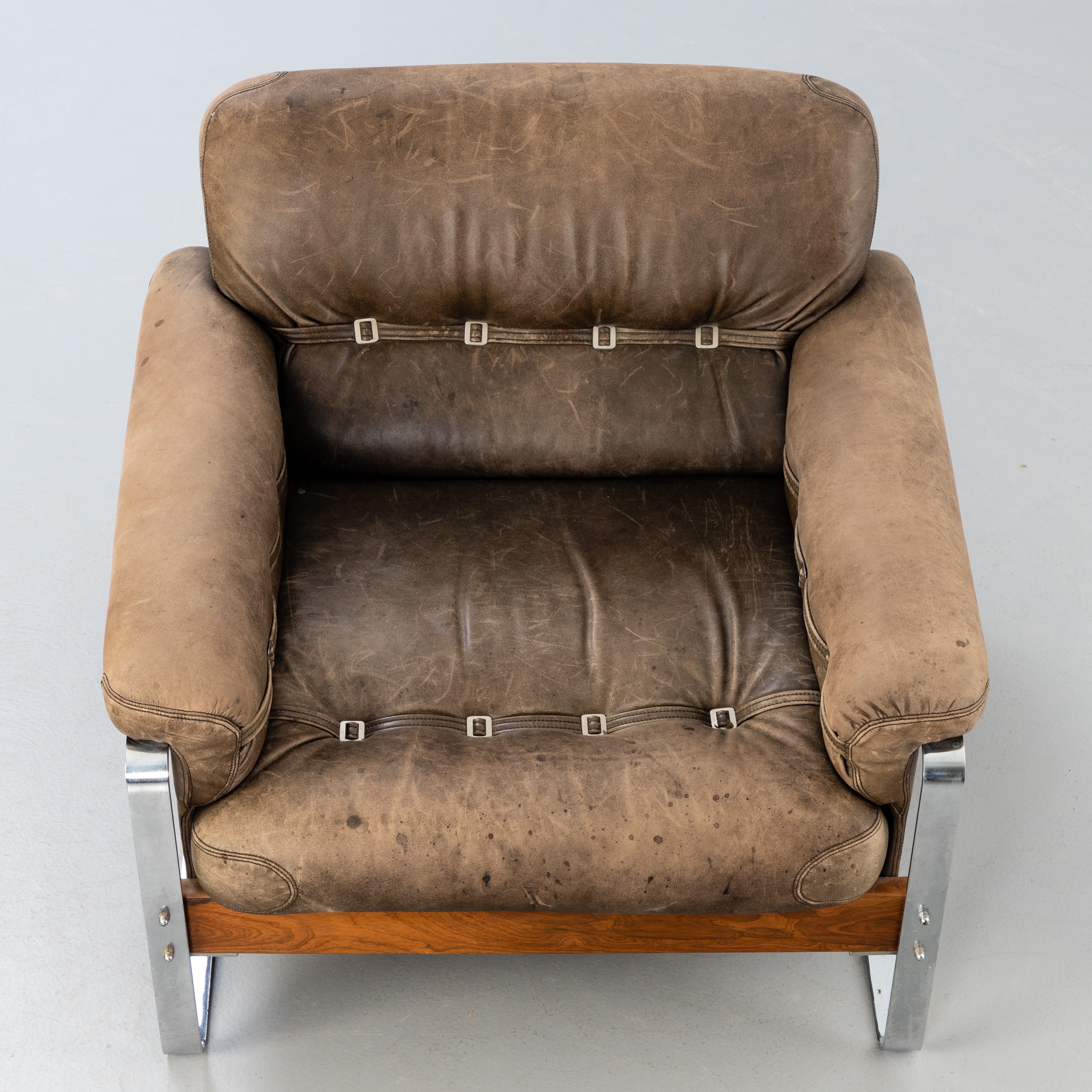 2865092. Læderlænestol med forkromet understel.