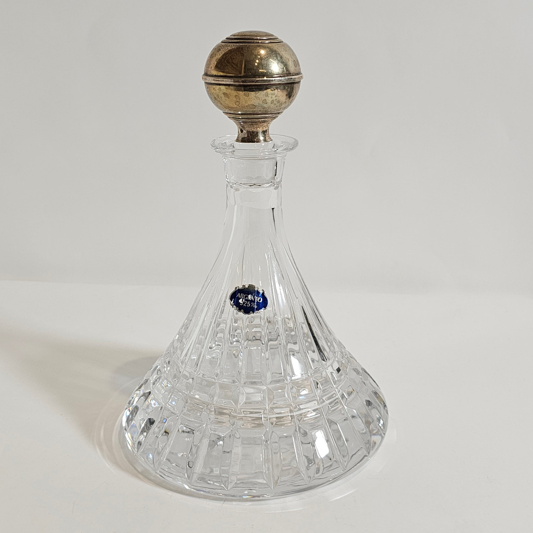 2870558. BÅDFLASKE. GLAS MED SØLVKNAP.