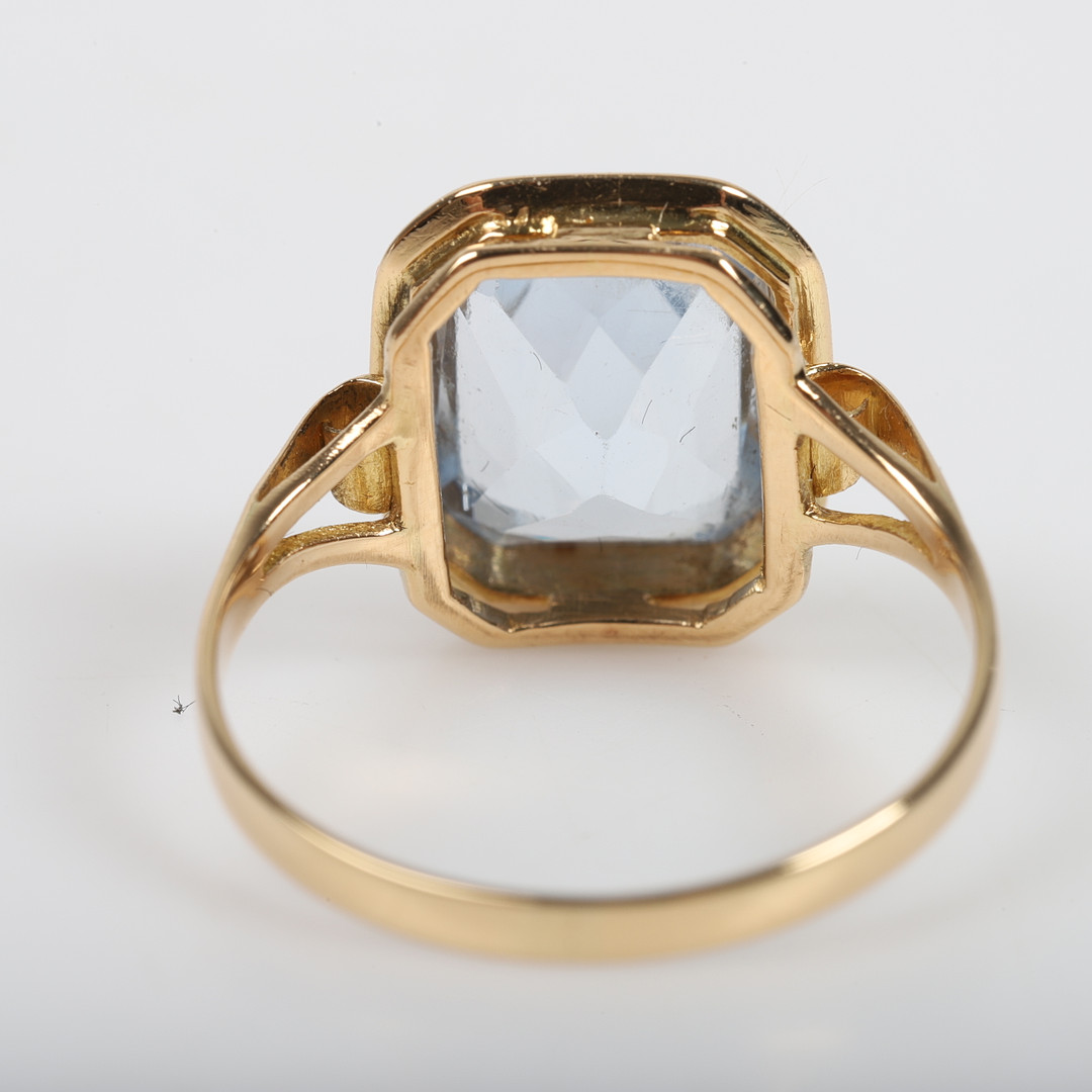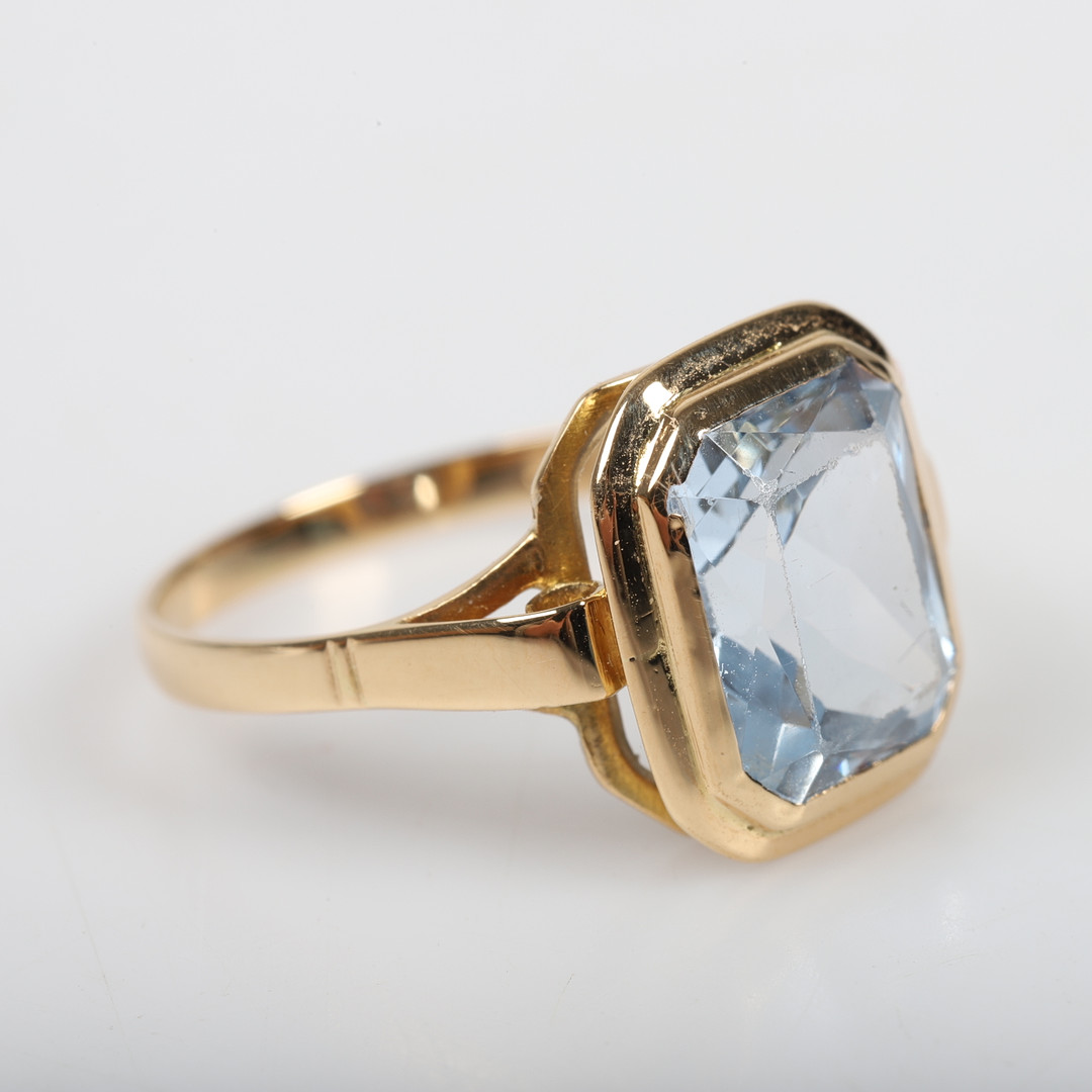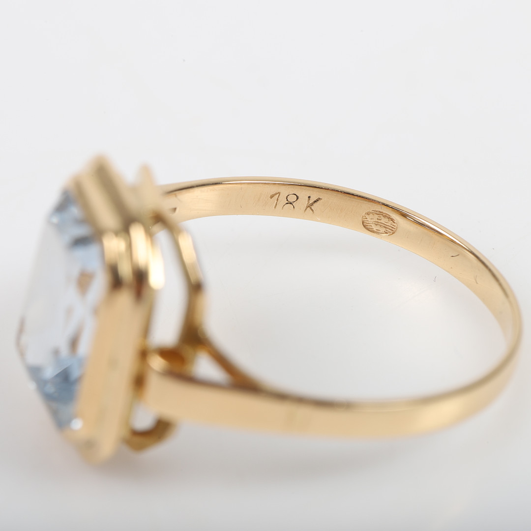 2873589. RING, 18K guld med krydsslebet blå sten.
