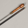 Det drejede askehåndtag med skruelåg, der omslutter et whiskytot-reservoir, messingkrave til 71 cm tilspidsende sekskantet stålklinge, eboniseret bambusskede med tilspidsende messinghylster.