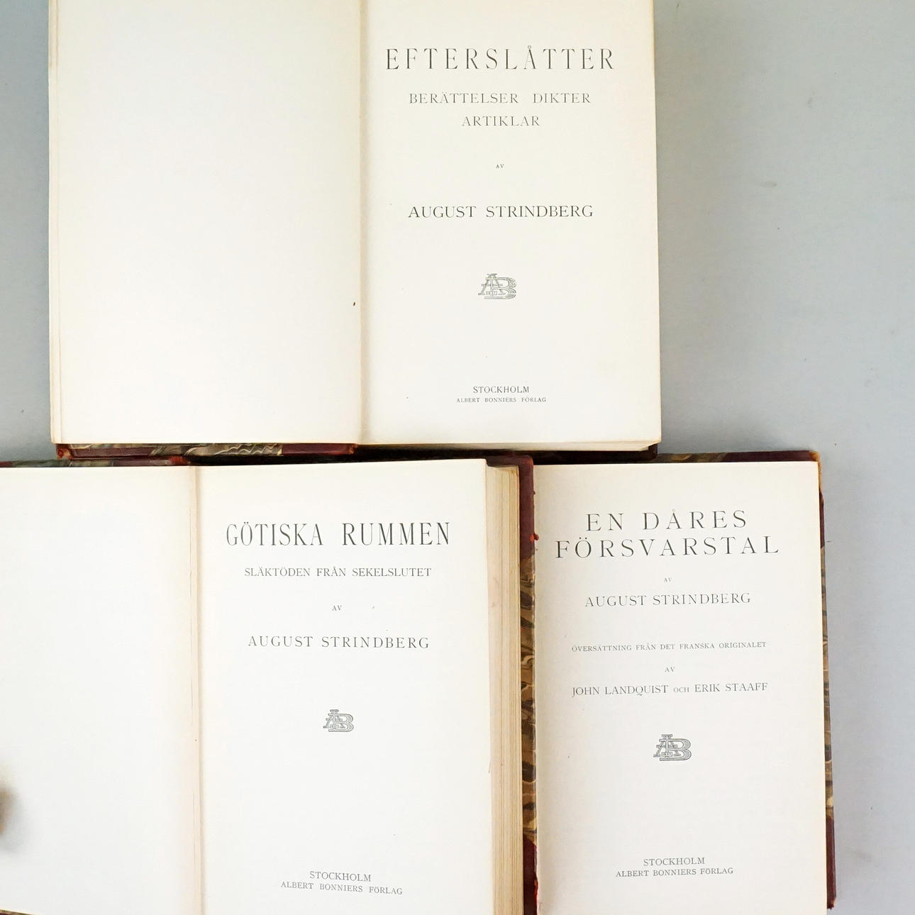 August Strindberg: Samlede skrifter, 7 bind, A. Bonniers Förlag, 1922.
