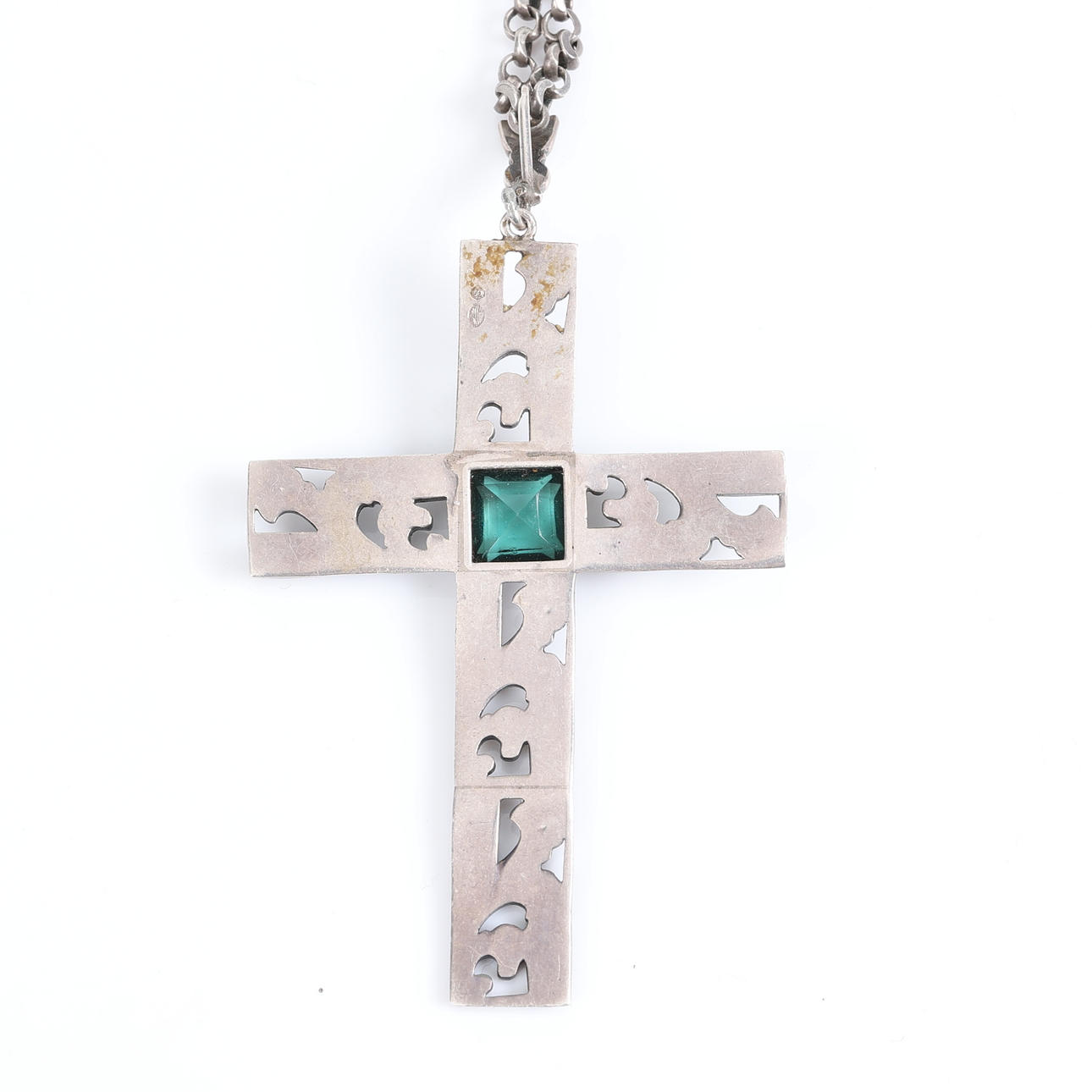 Sølv halskæde med skåret marcasit og en grøn sten Vedhæng højde 7 cm Halskæde længde 73 cm.