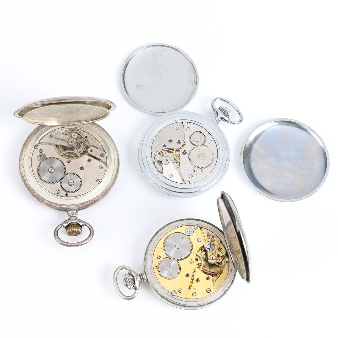 Cyma lommeur til blinde Urkasse i sølv Diameter 5,5 cm Revue lommeur til blinde Urkasse i hvidmetal Diameter 5 cm Nilax lommeur til blinde Urkasse i hvidmetal Diameter 5,1 cm.