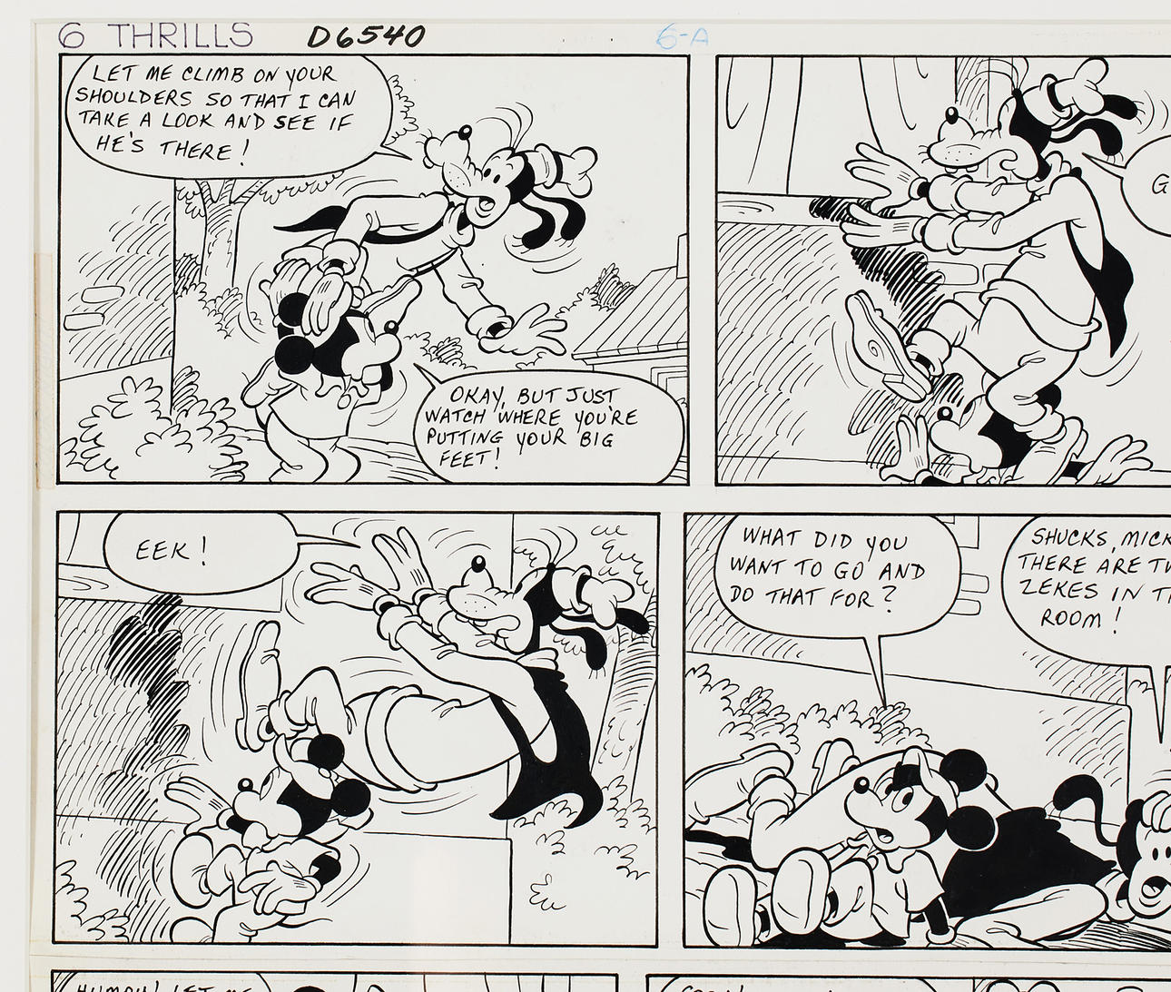 Blæk på papir, 46,5 x 32 cm. Mærket 6-THRILLS D6540. Frimærke signeret Disney.