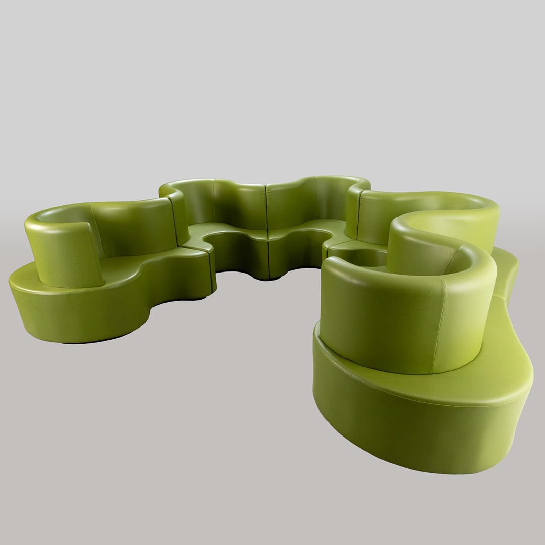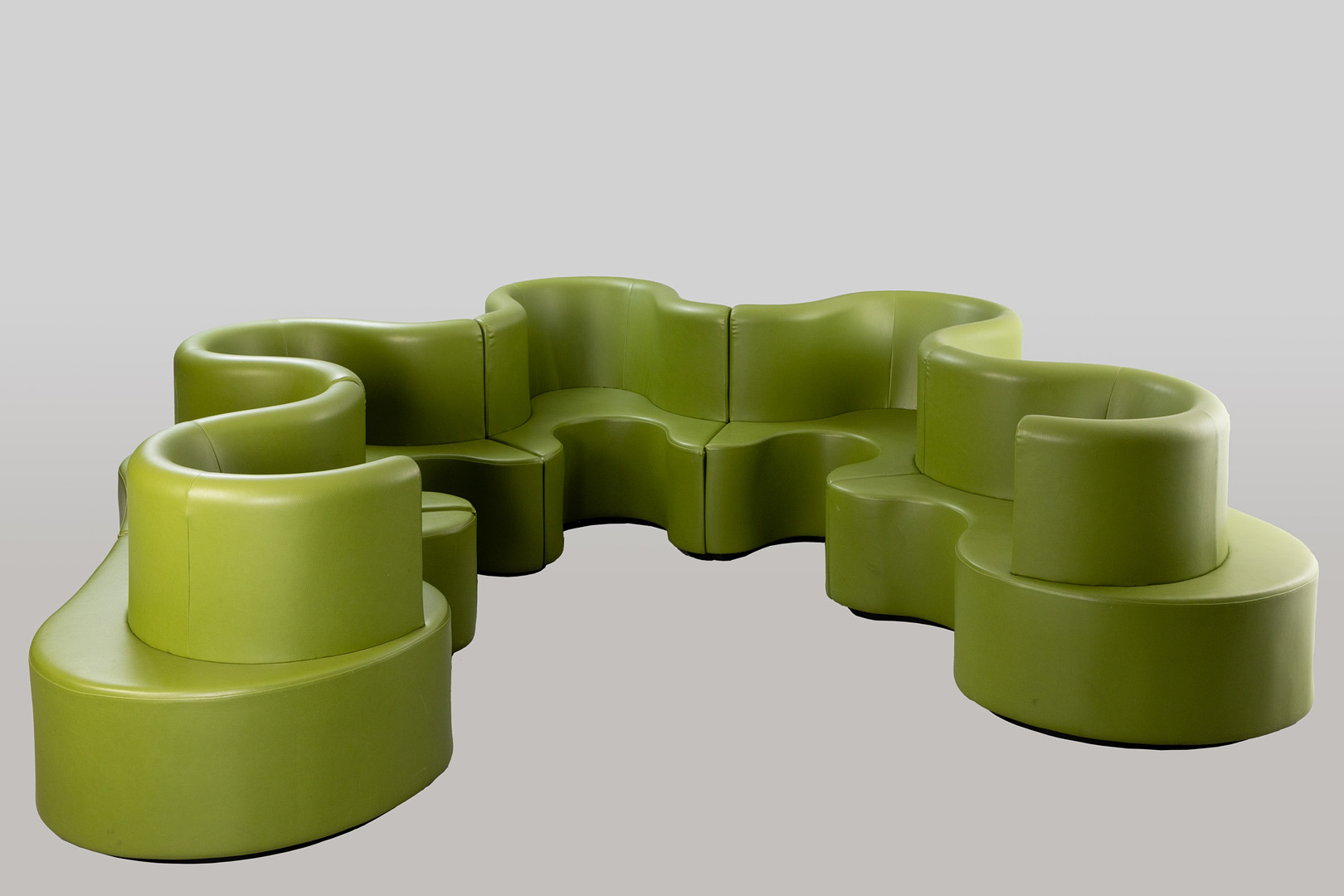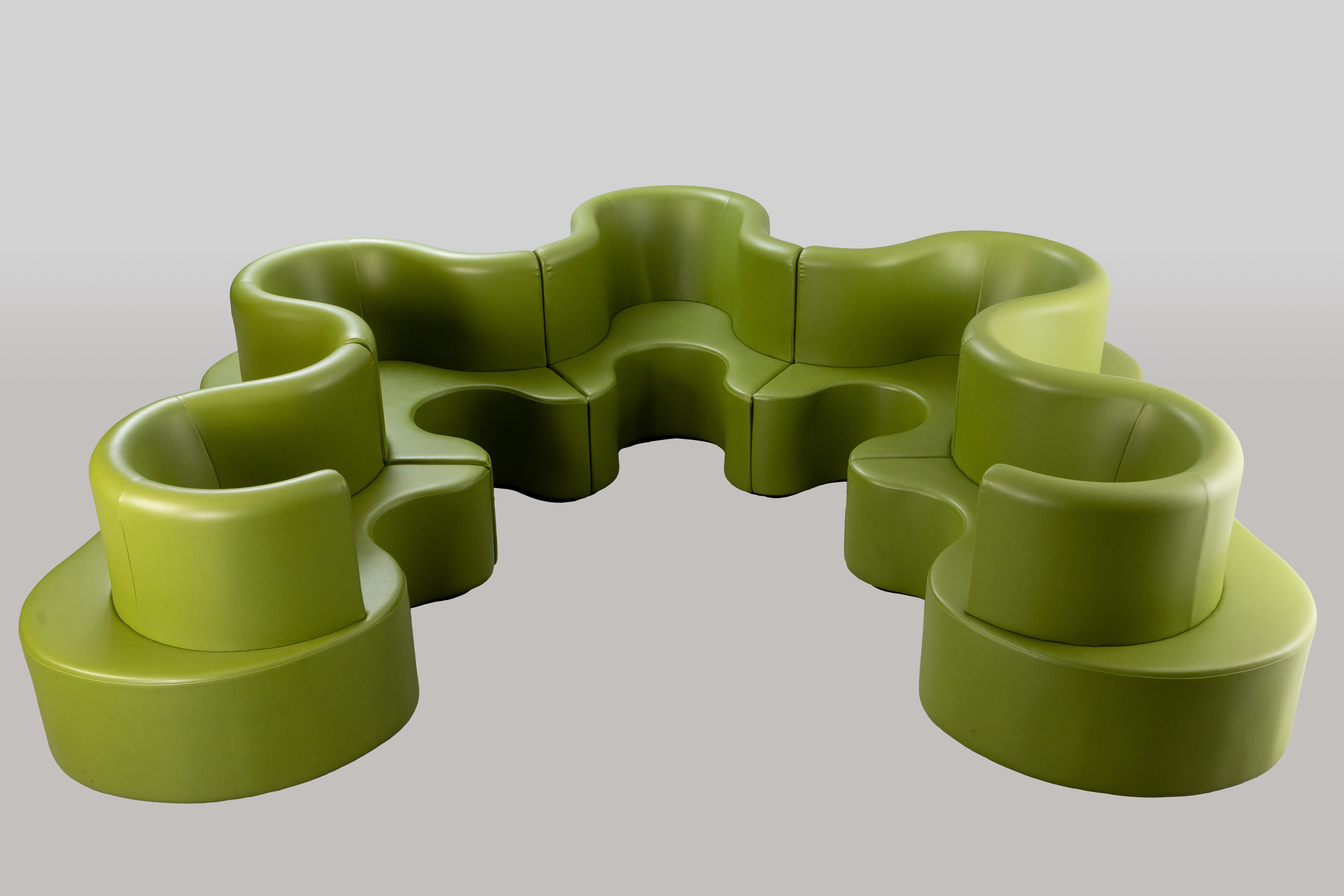 2885069. VERNER PANTON. pande. Sofa / modulsystem 'Cloverleaf', grøn vinyl, 5 stk.
