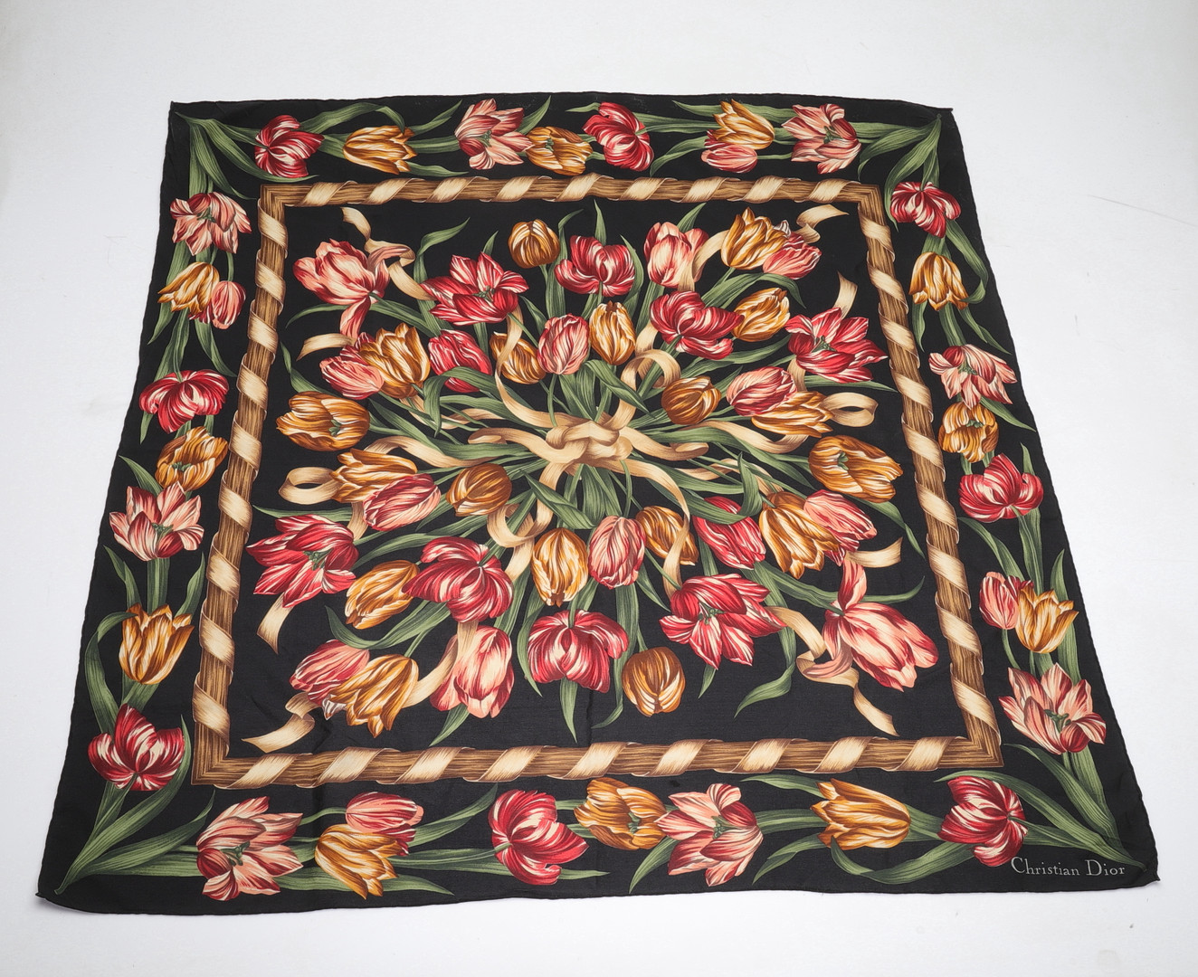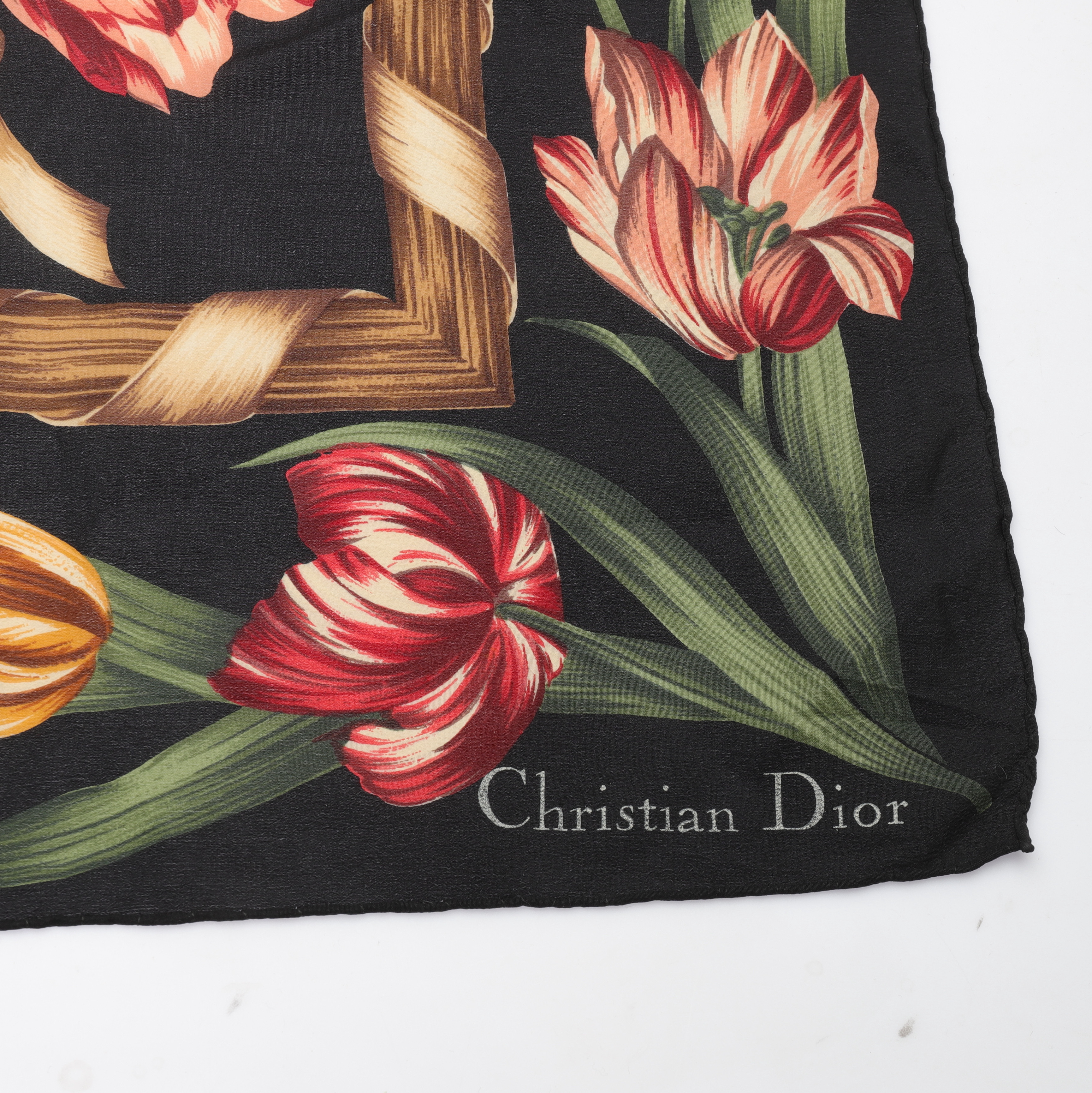 2886065. CHRISTIAN DIOR. Tørklæde, silke, ca 79x82cm.