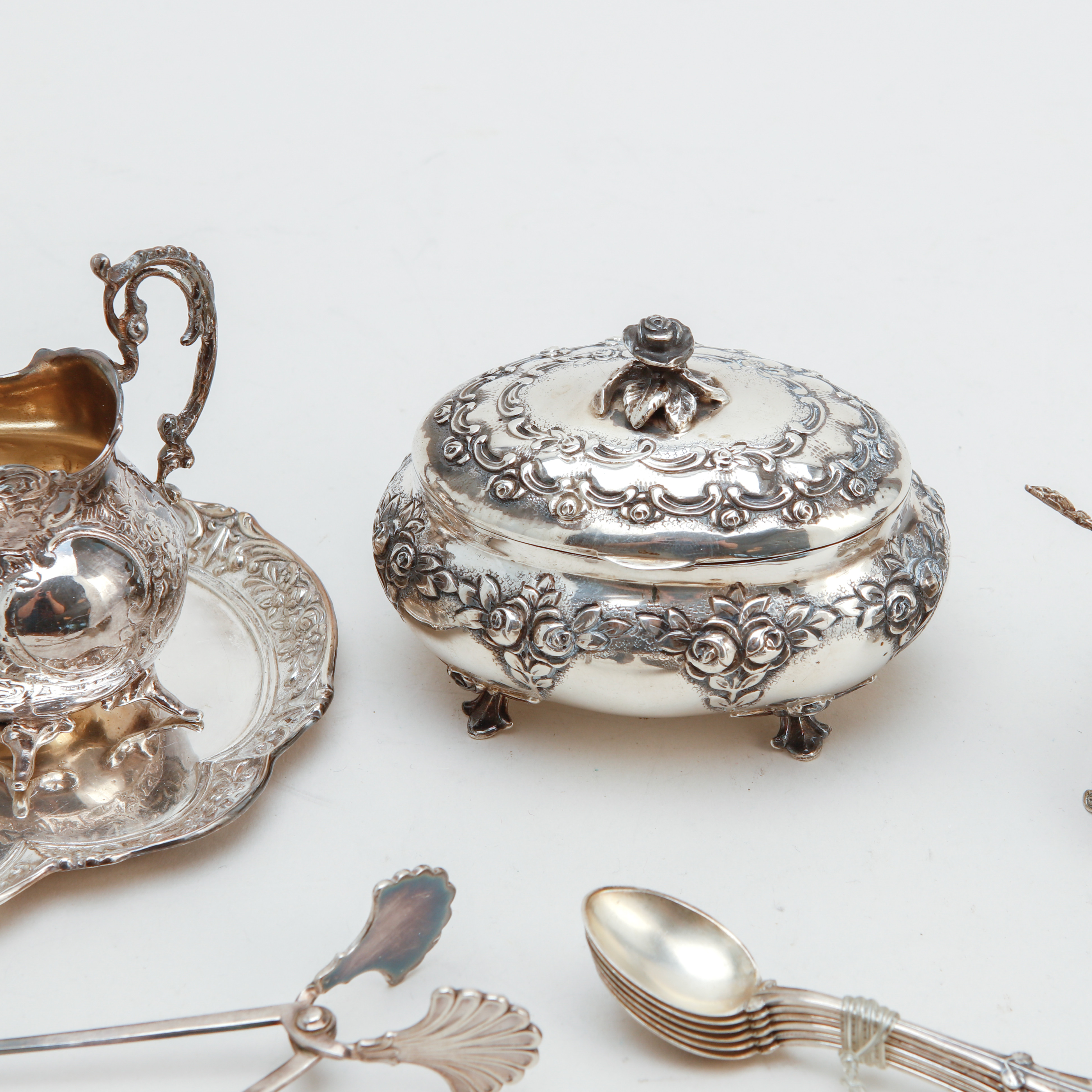 2886743. SØLVGENSTANDE, 15 stk., vægt ca 530 gram.