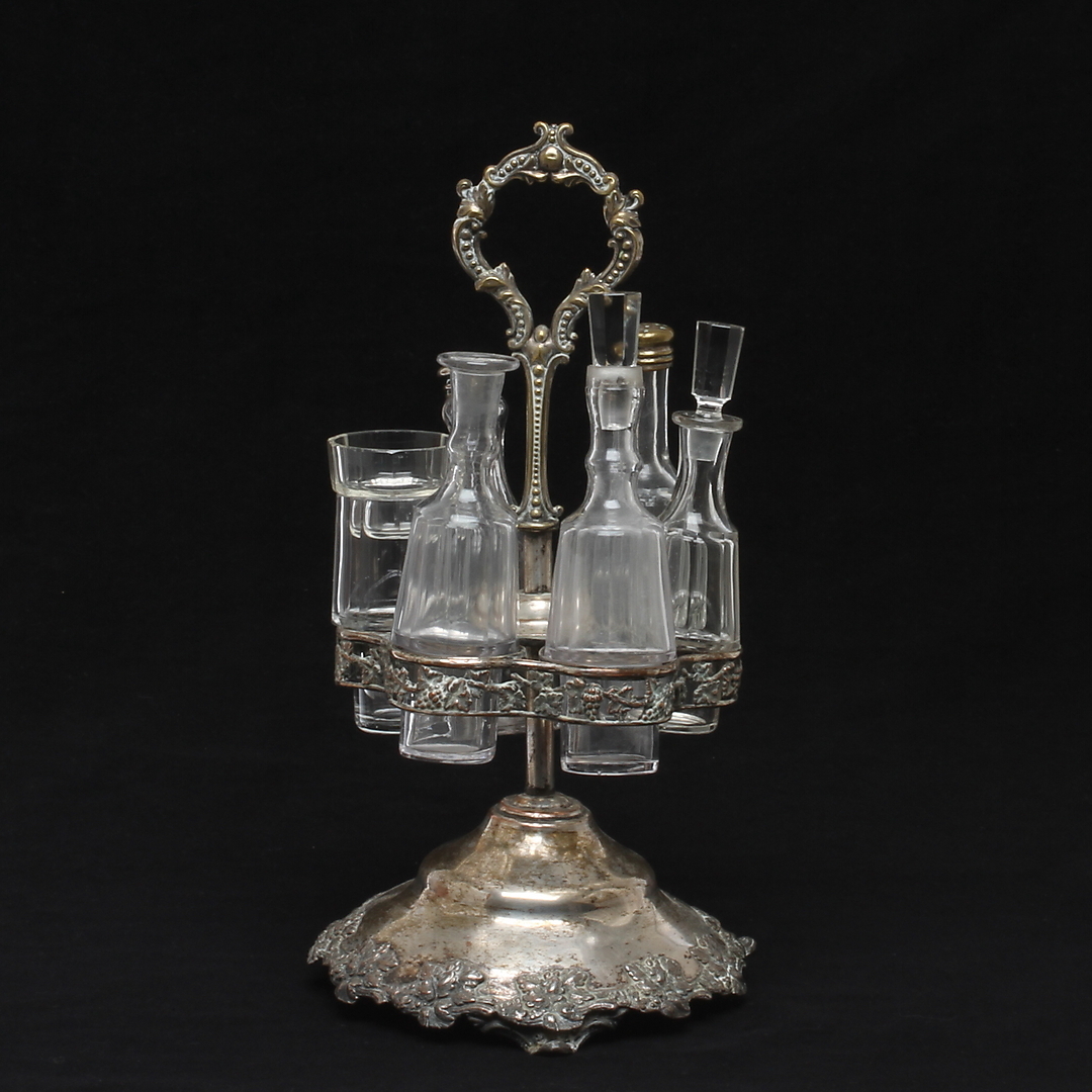 288955. BORDSURTOUT, nysølv og glas, 1900-tallet.