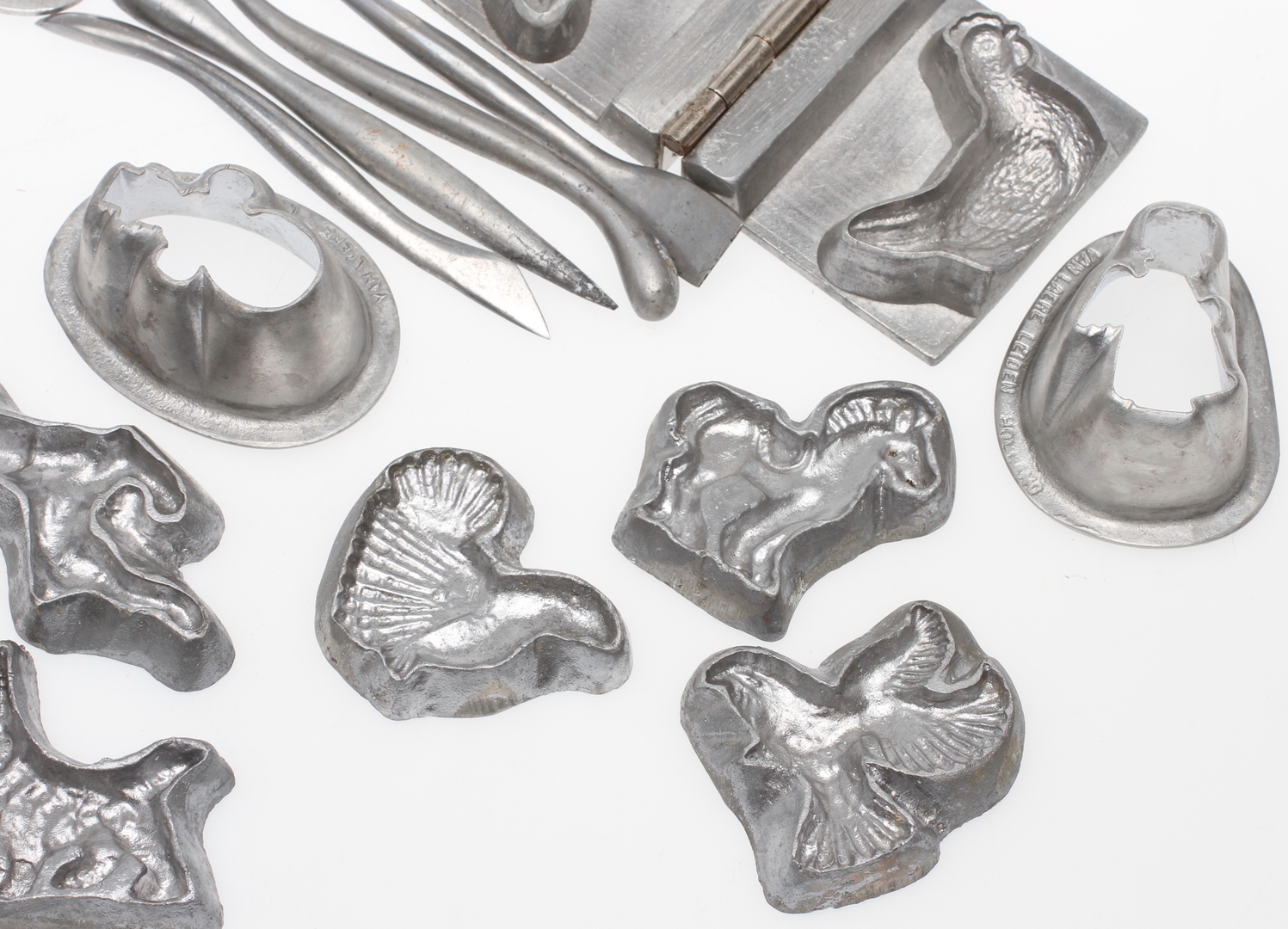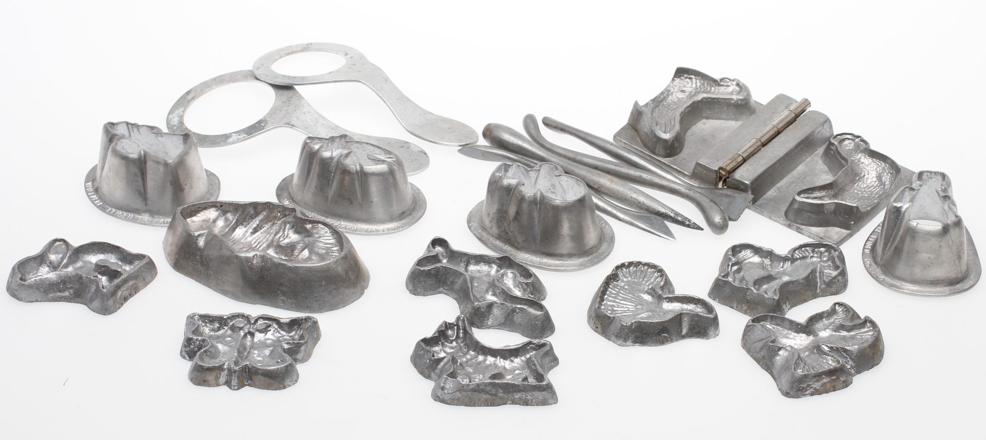 28907. CHOKOLADE FORMER mm., 19 dele, dåse.
