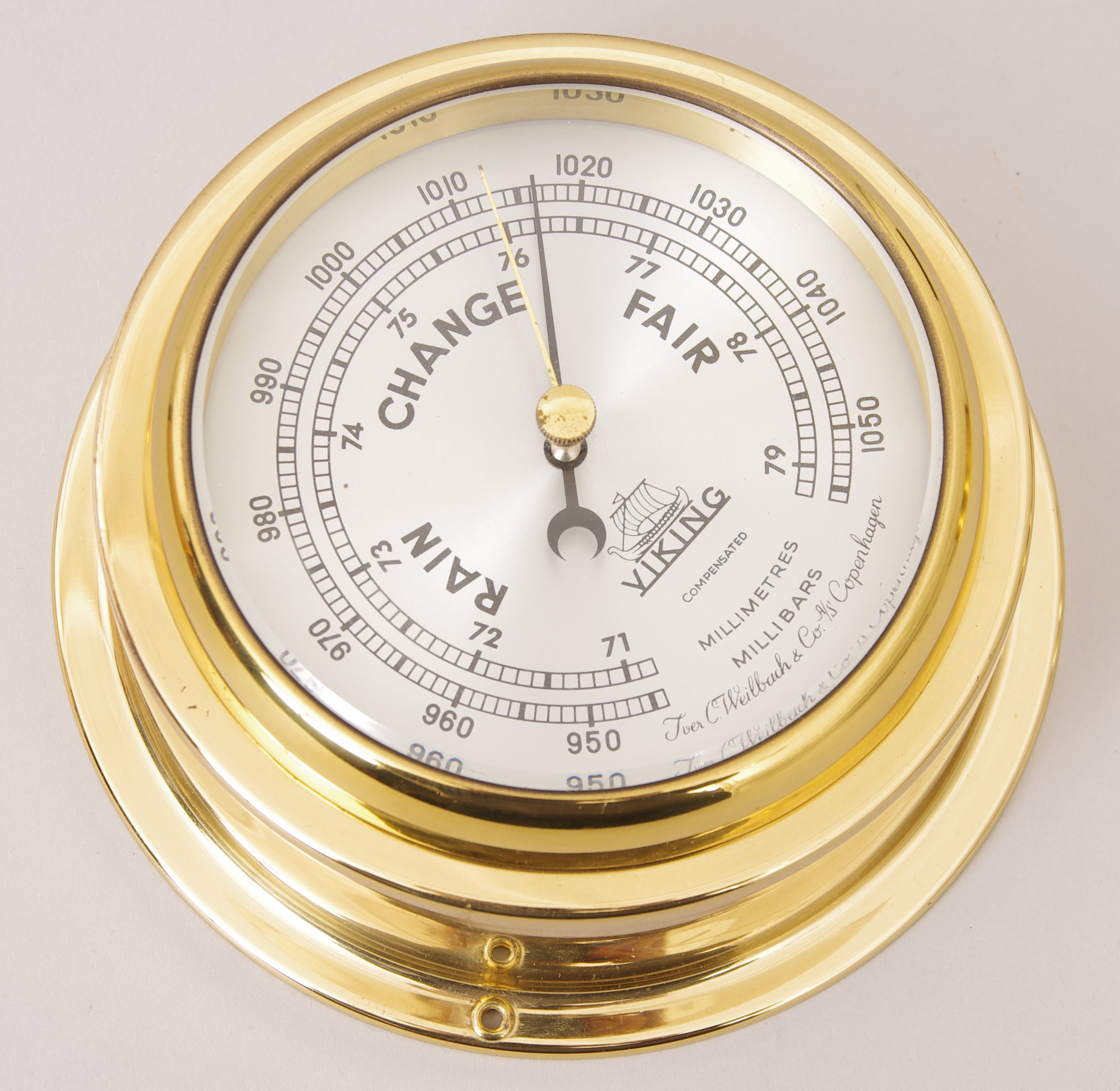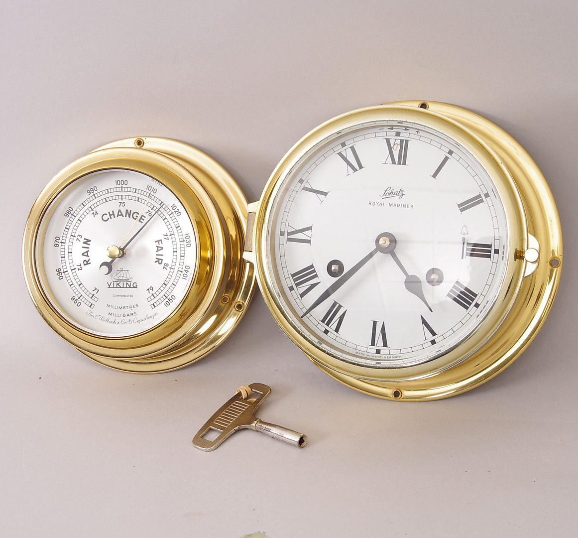 289470. SKIBSUR OG BAROMETER, Schatz/Viking, messing.