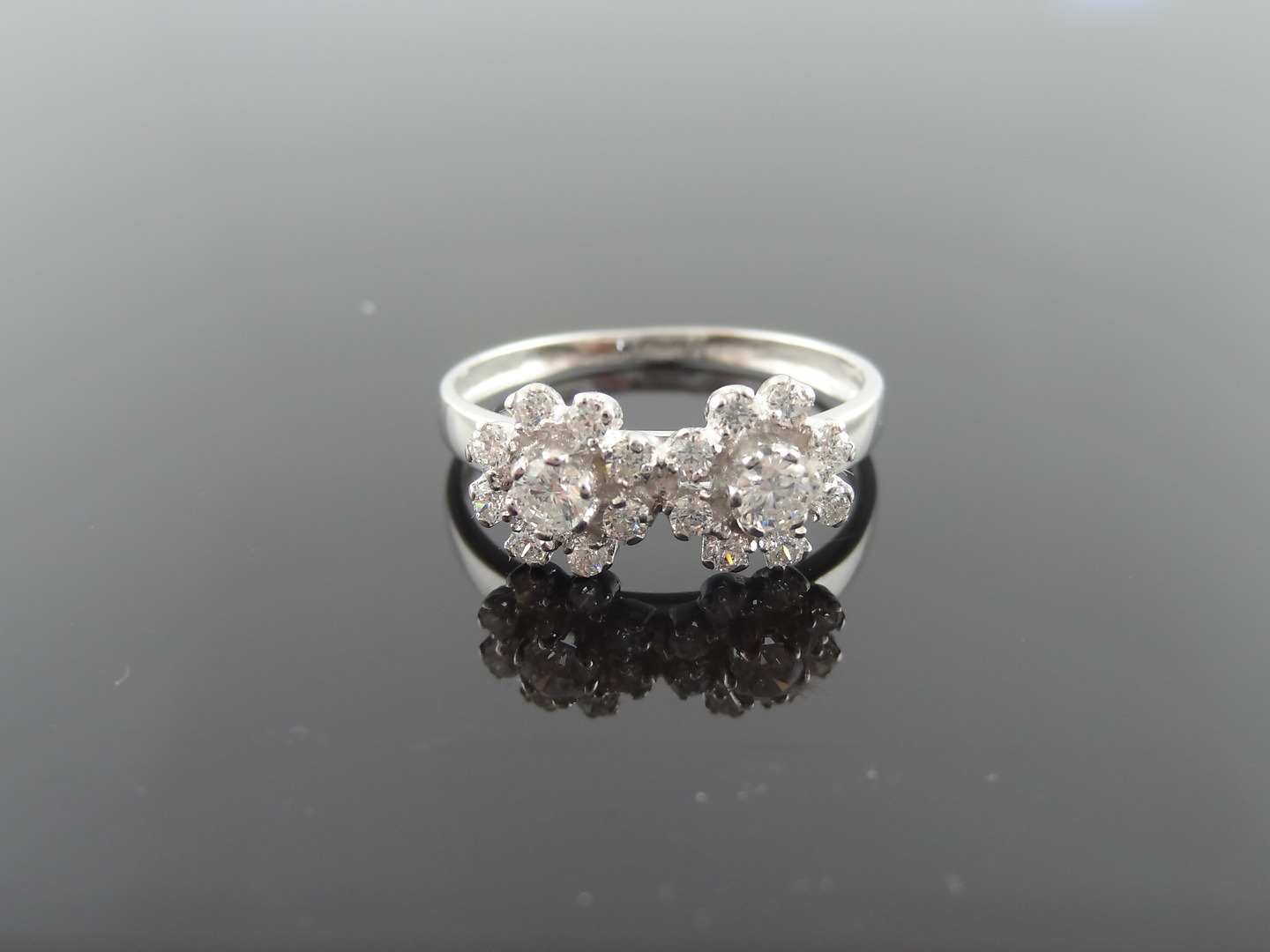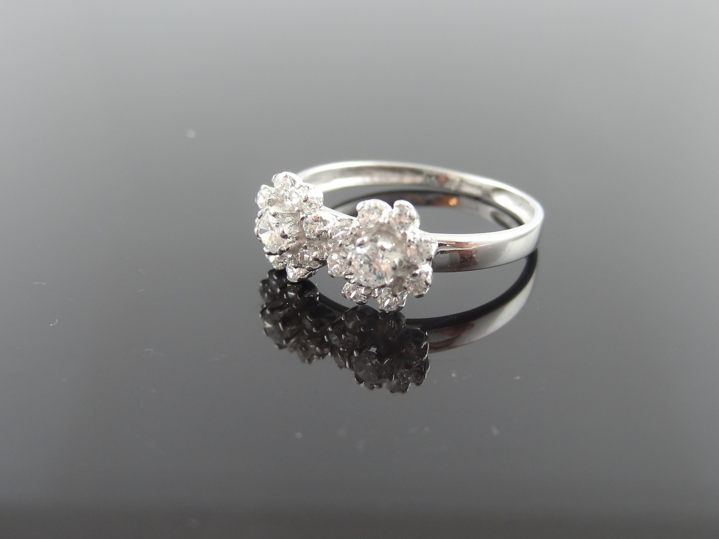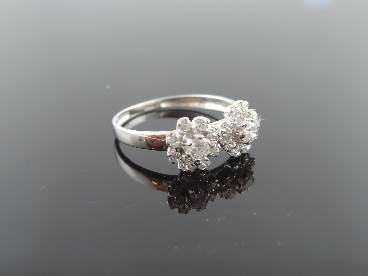 289855. DOBBELT BLOMSTER DESIGN Ring 18k guld.