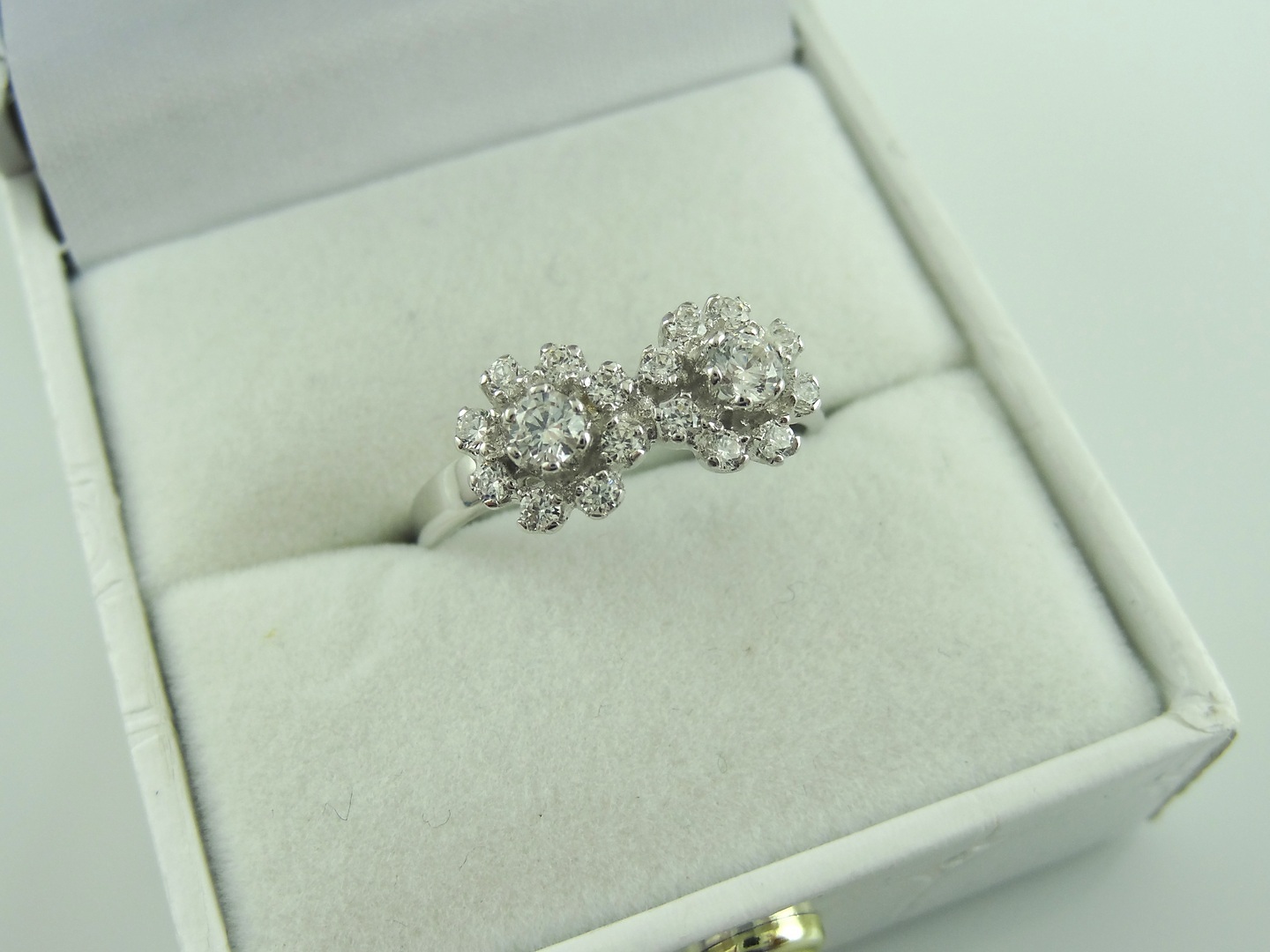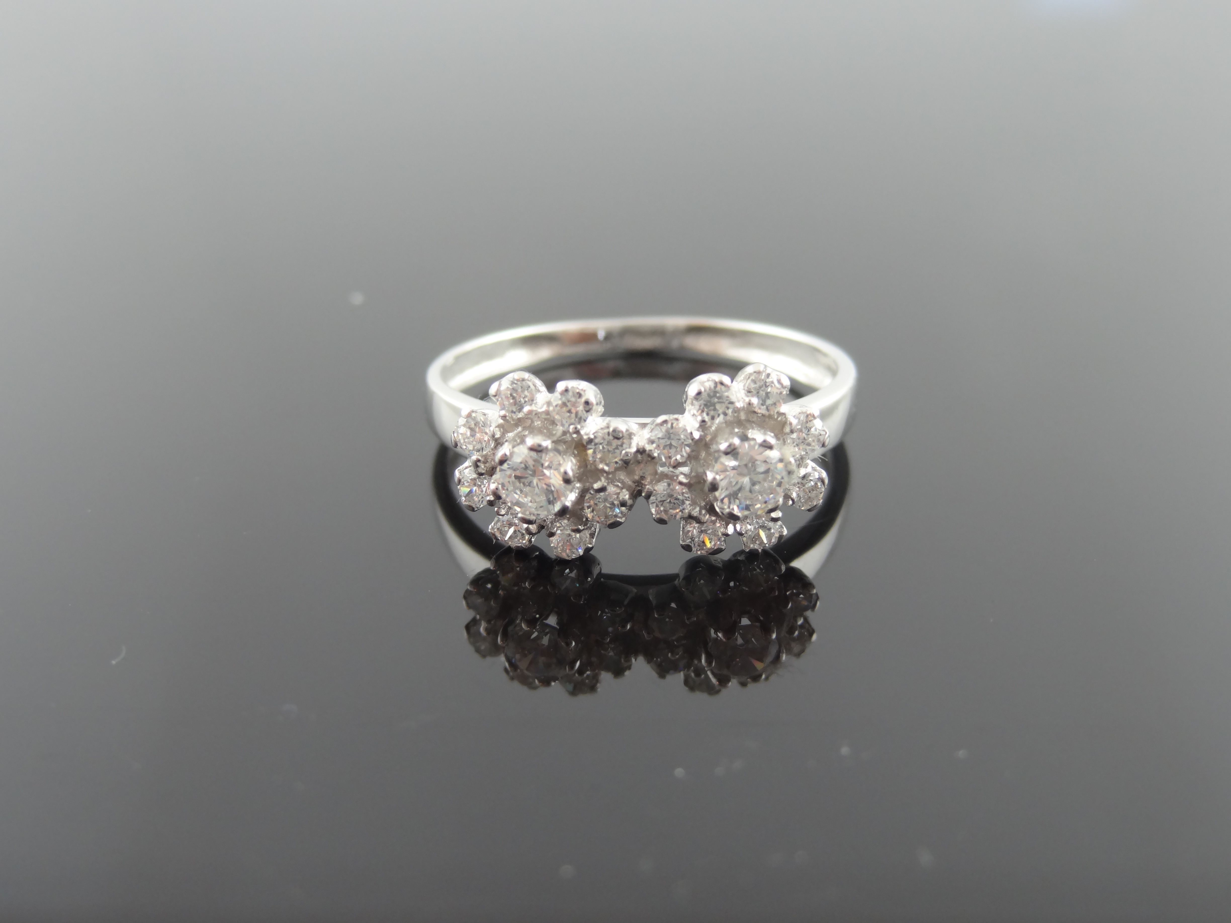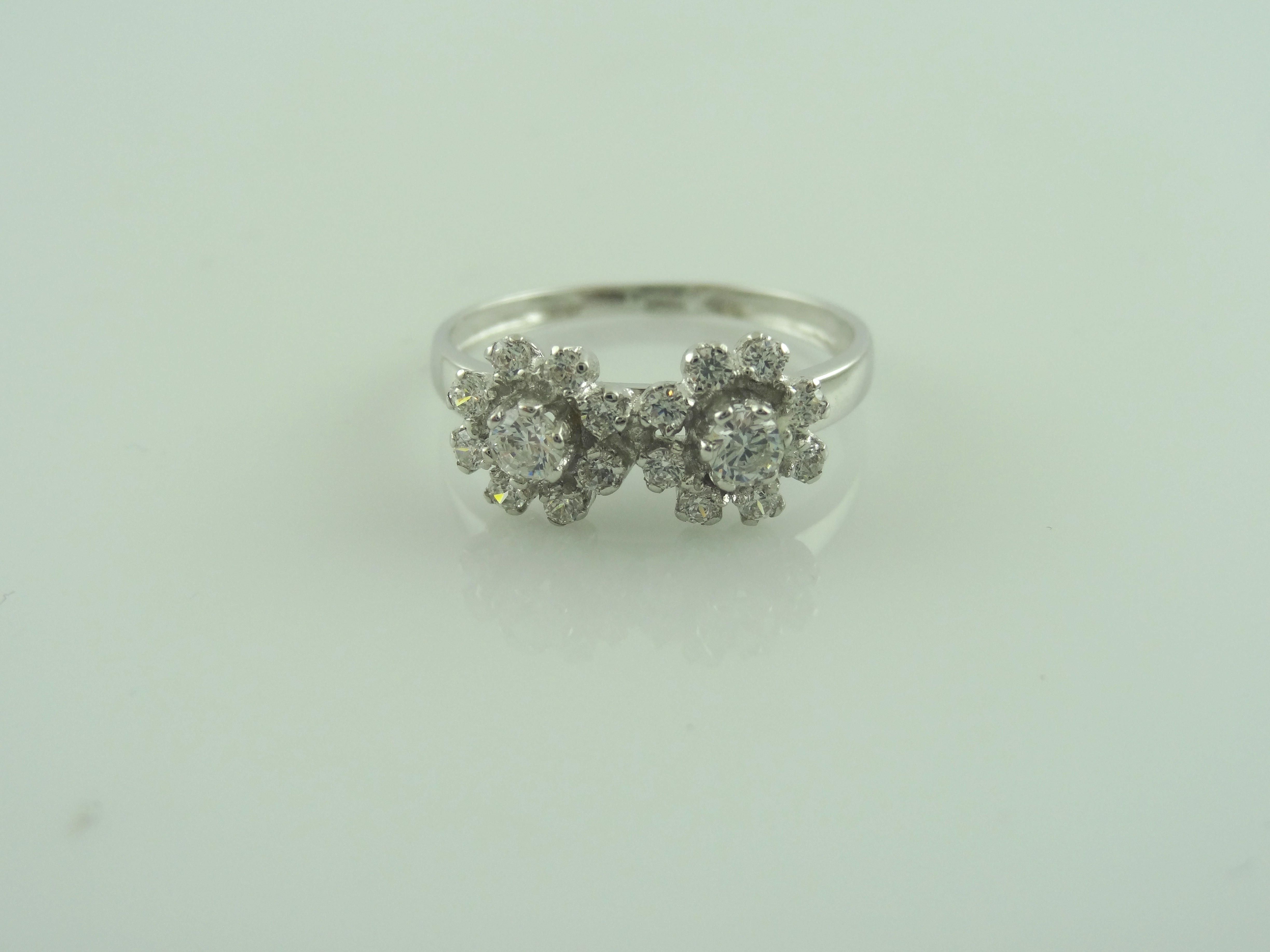 289855. DOBBELT BLOMSTER DESIGN Ring 18k guld.
