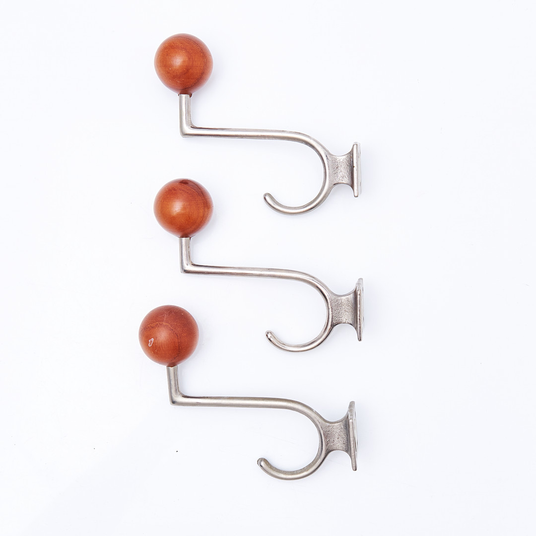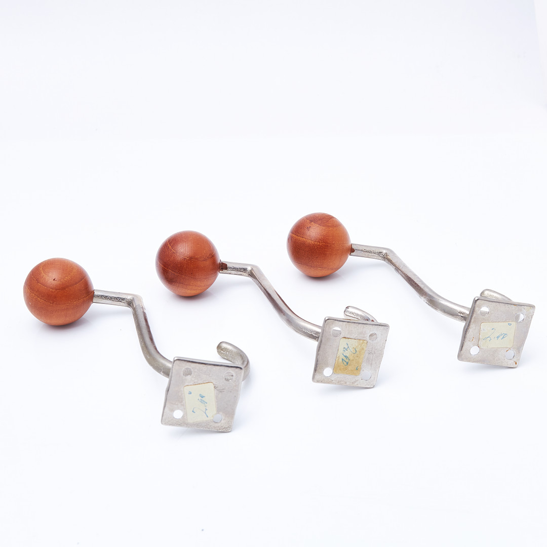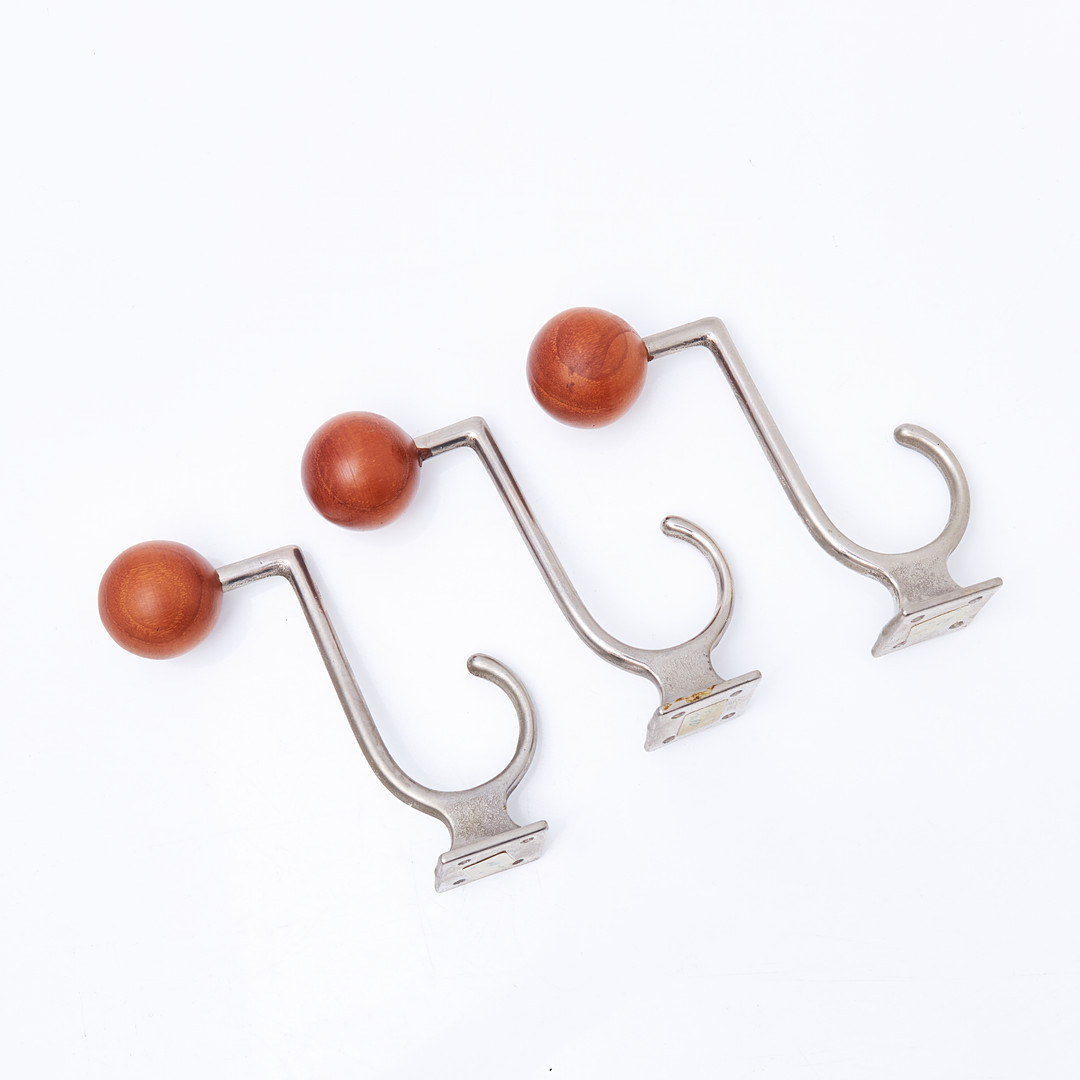 2903831. HATEREYLDE. Kroge, 3 stk, forkromet og teaktræ.