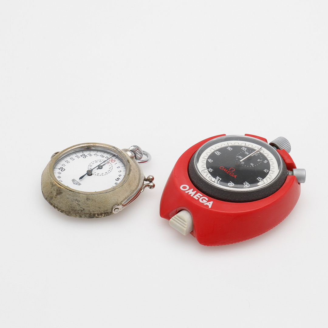 2905883. STOPUR, 2 STK, OMEGA OG HEUER.
