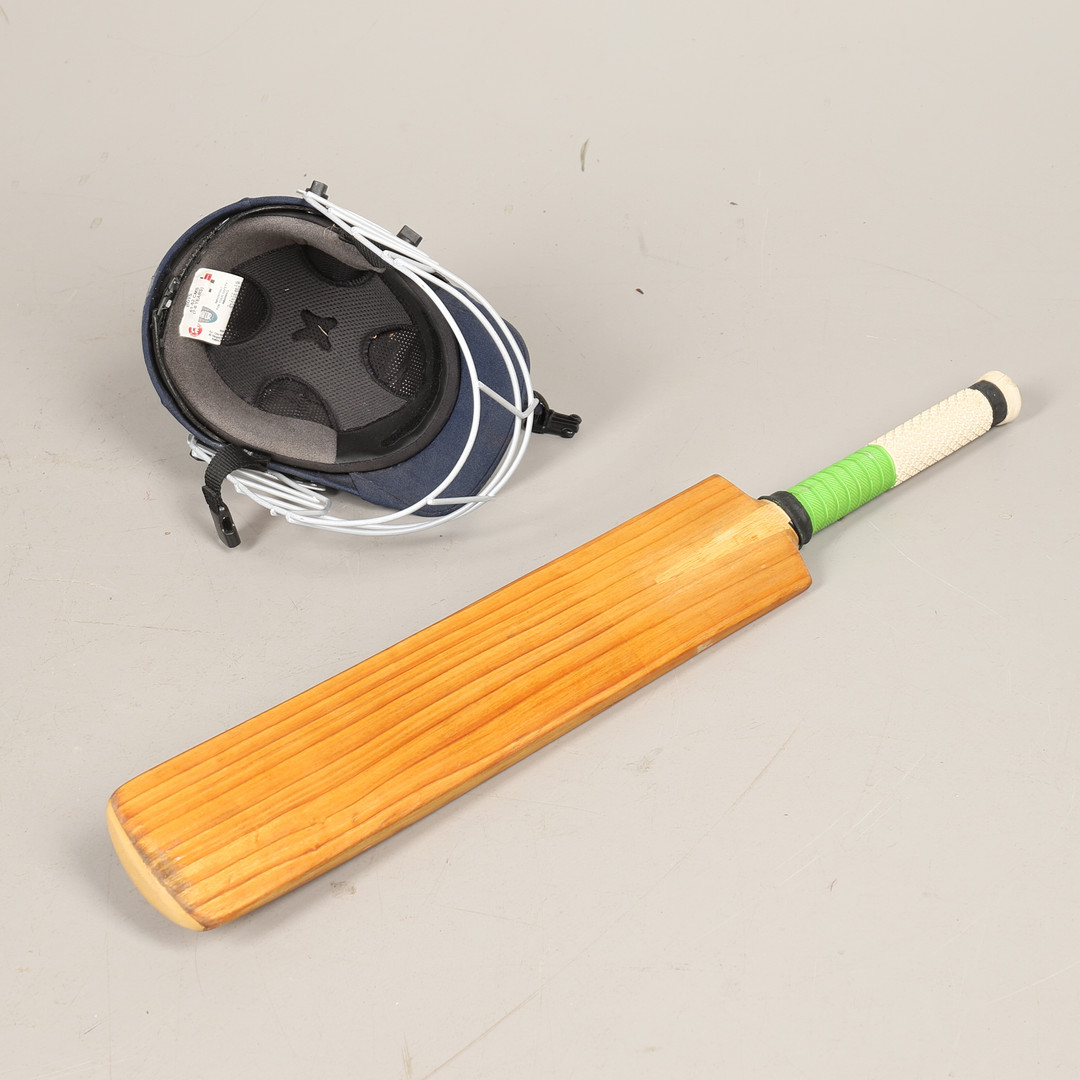 2905969. EN GRÅ NICHOLS CRICKET FLAGERMUS OG HJELM.