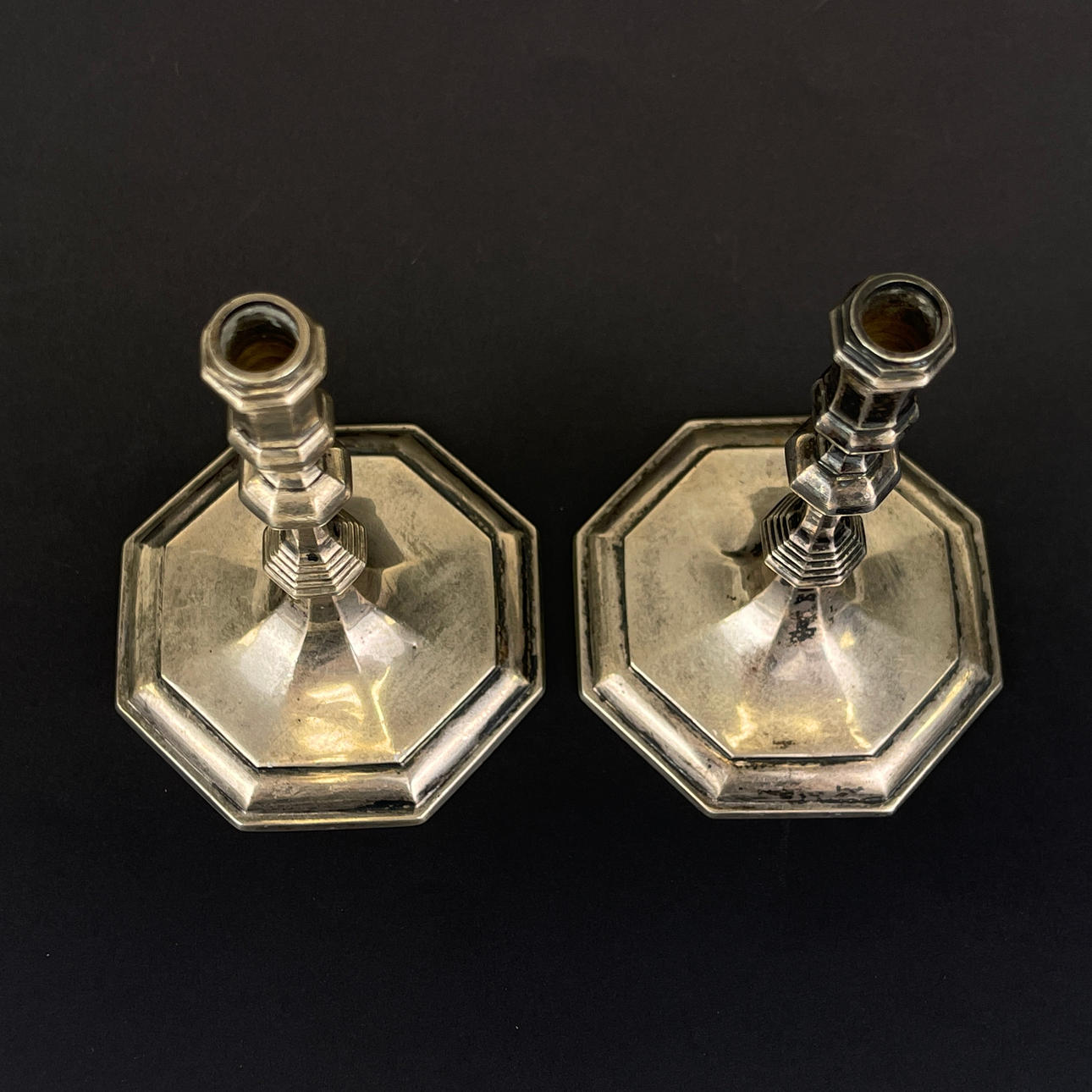 TUNGE ENGELSK SØLV LYSSTAKER.