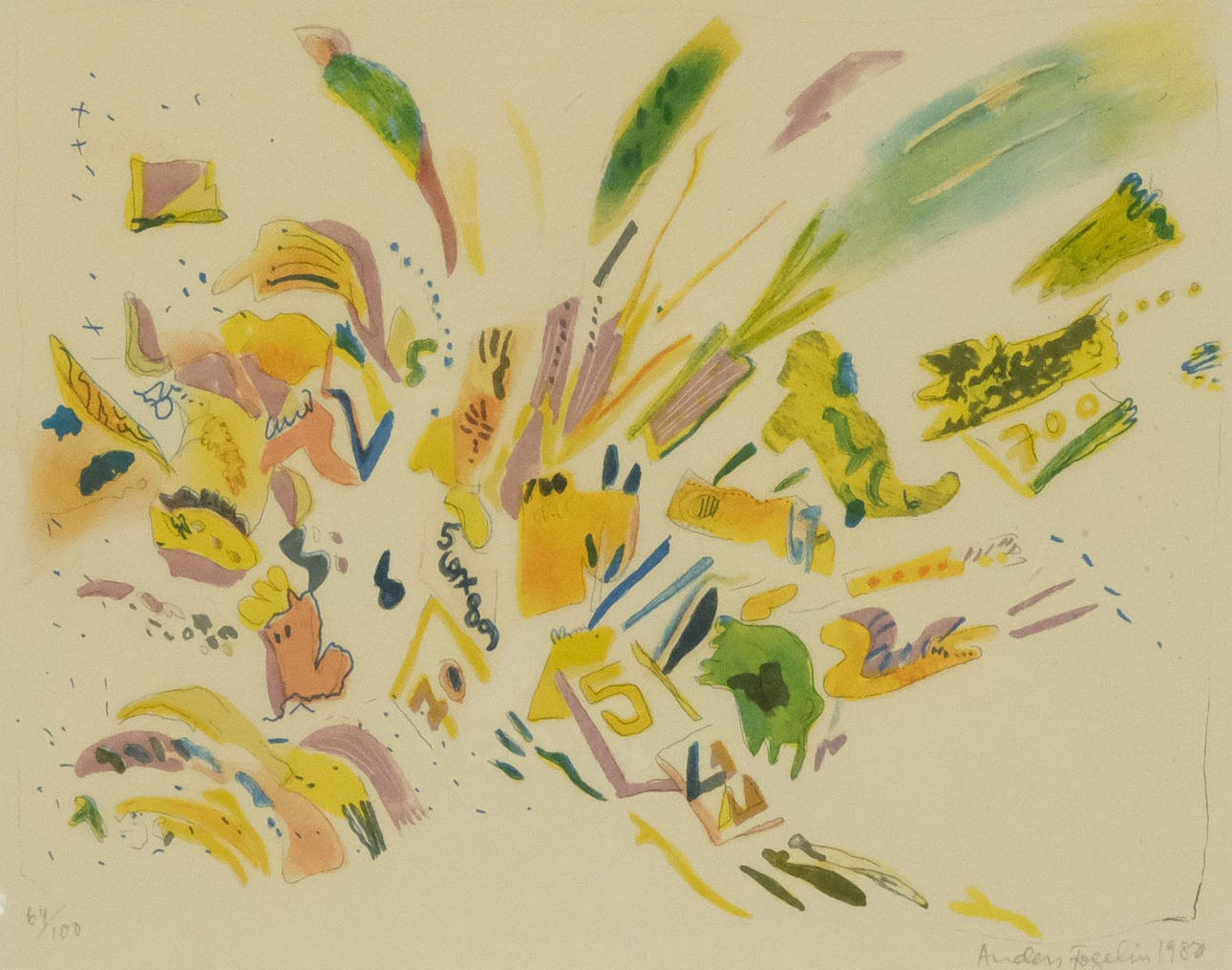 Litografi, 64/100, signeret og dateret 1980, billedmål: 27x34cm, rammemål: 41,5x47,5cm.