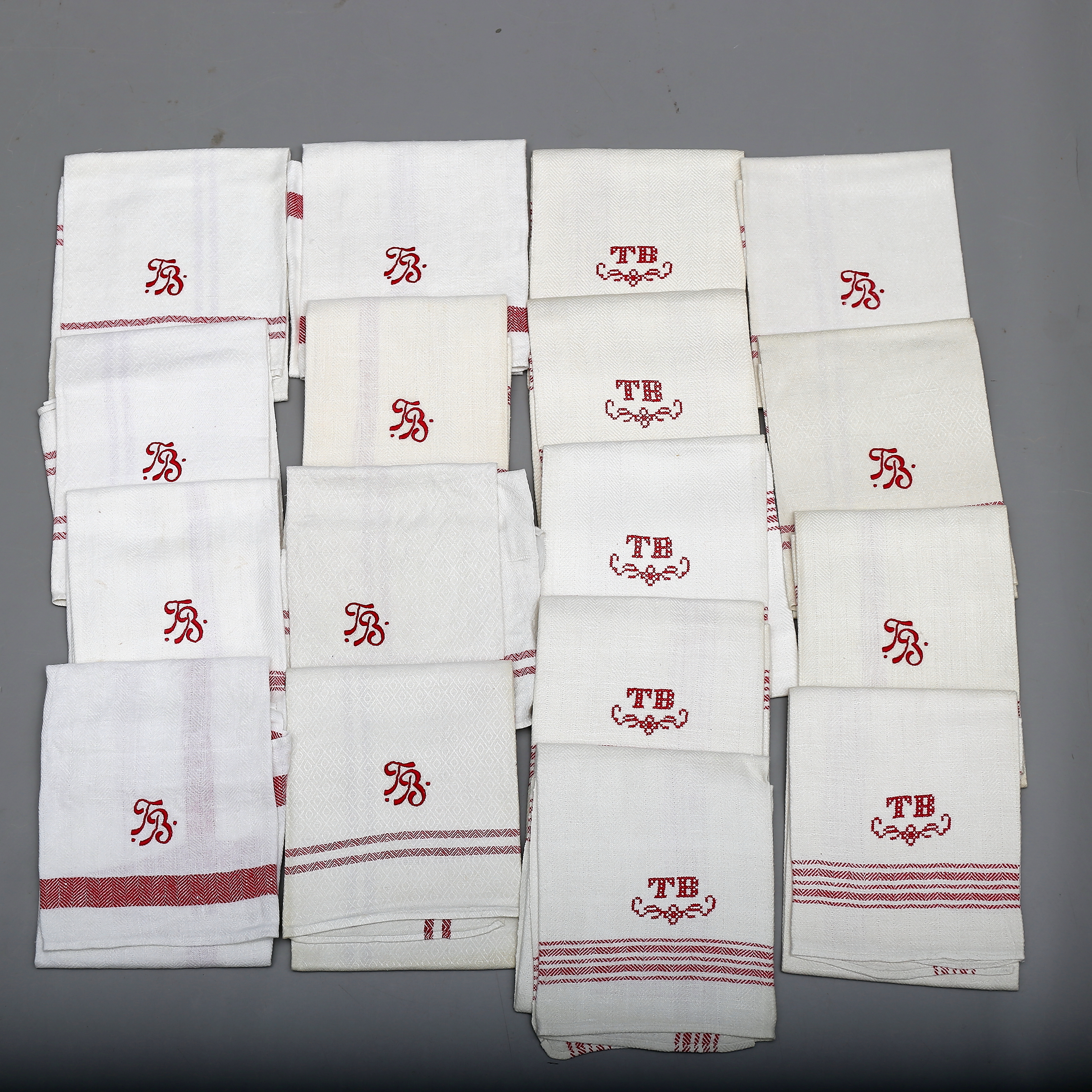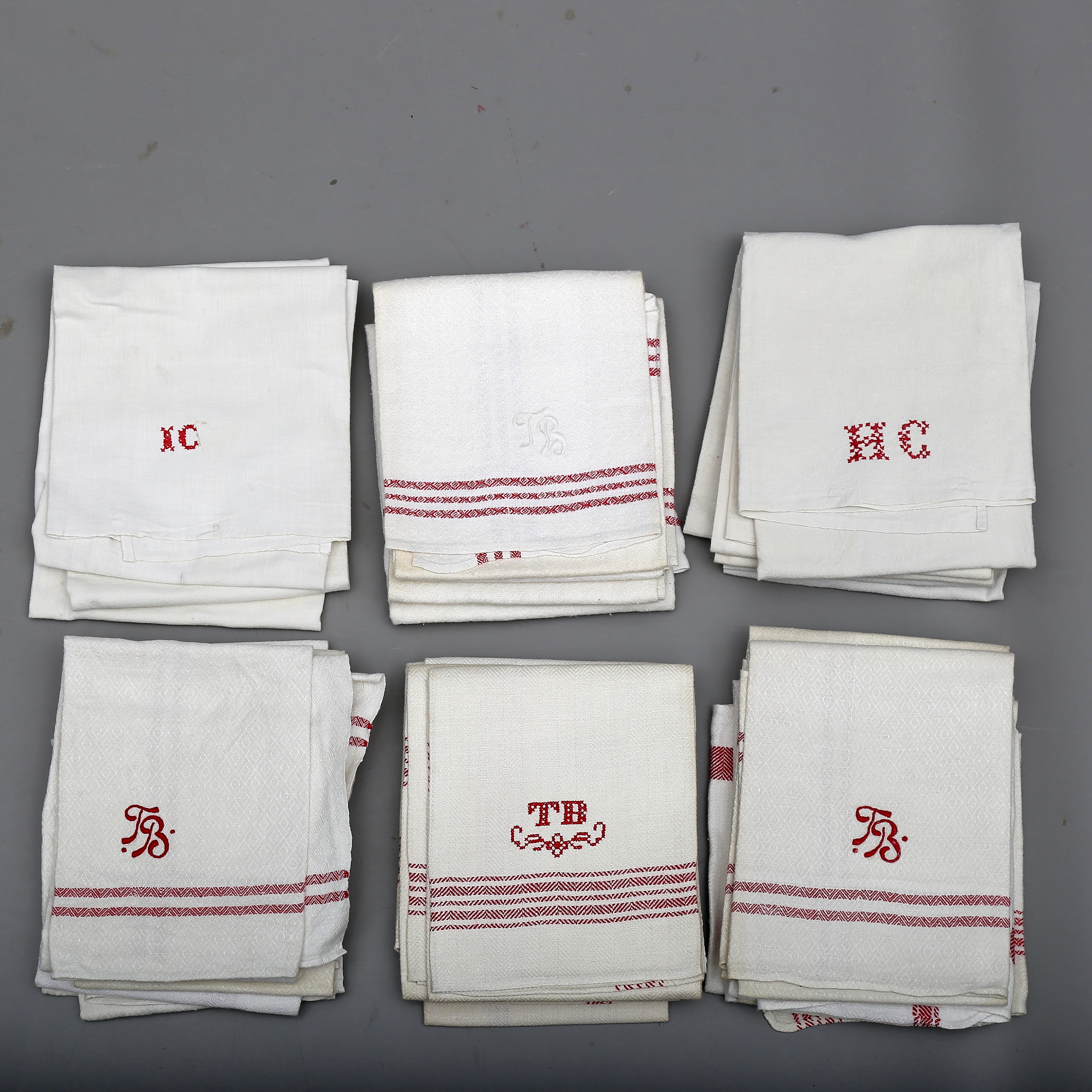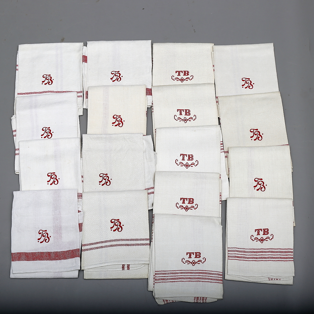 291274. Sæt HÅNDKLÆDER, 32 stk, linned/bomuld, monogram signeret.