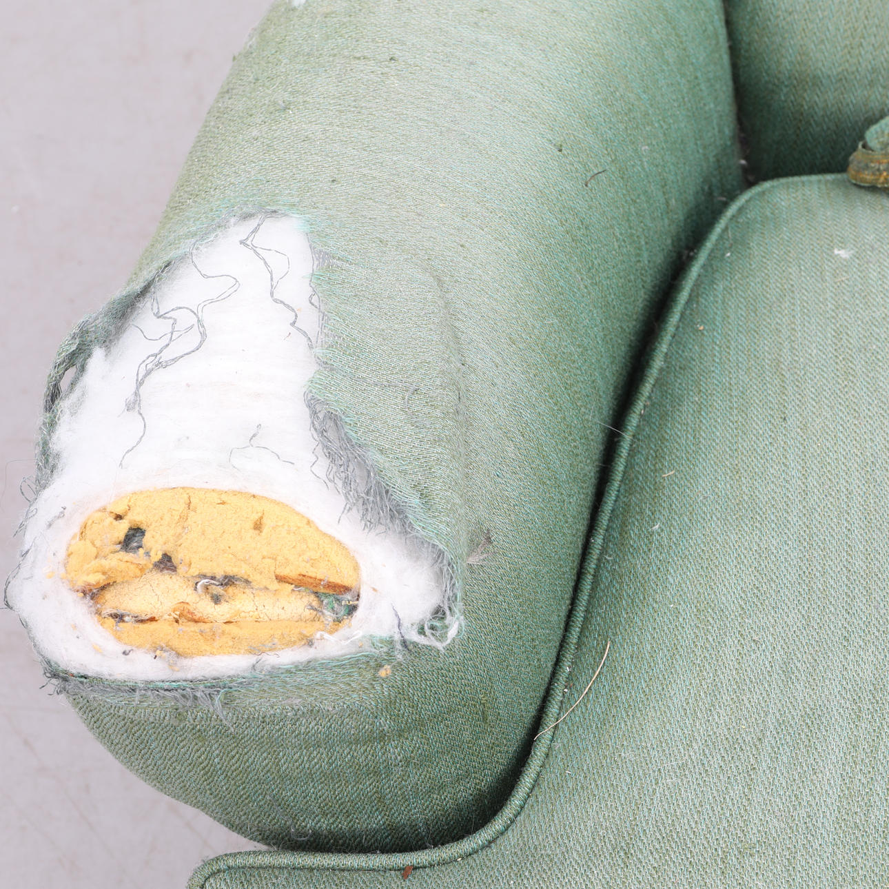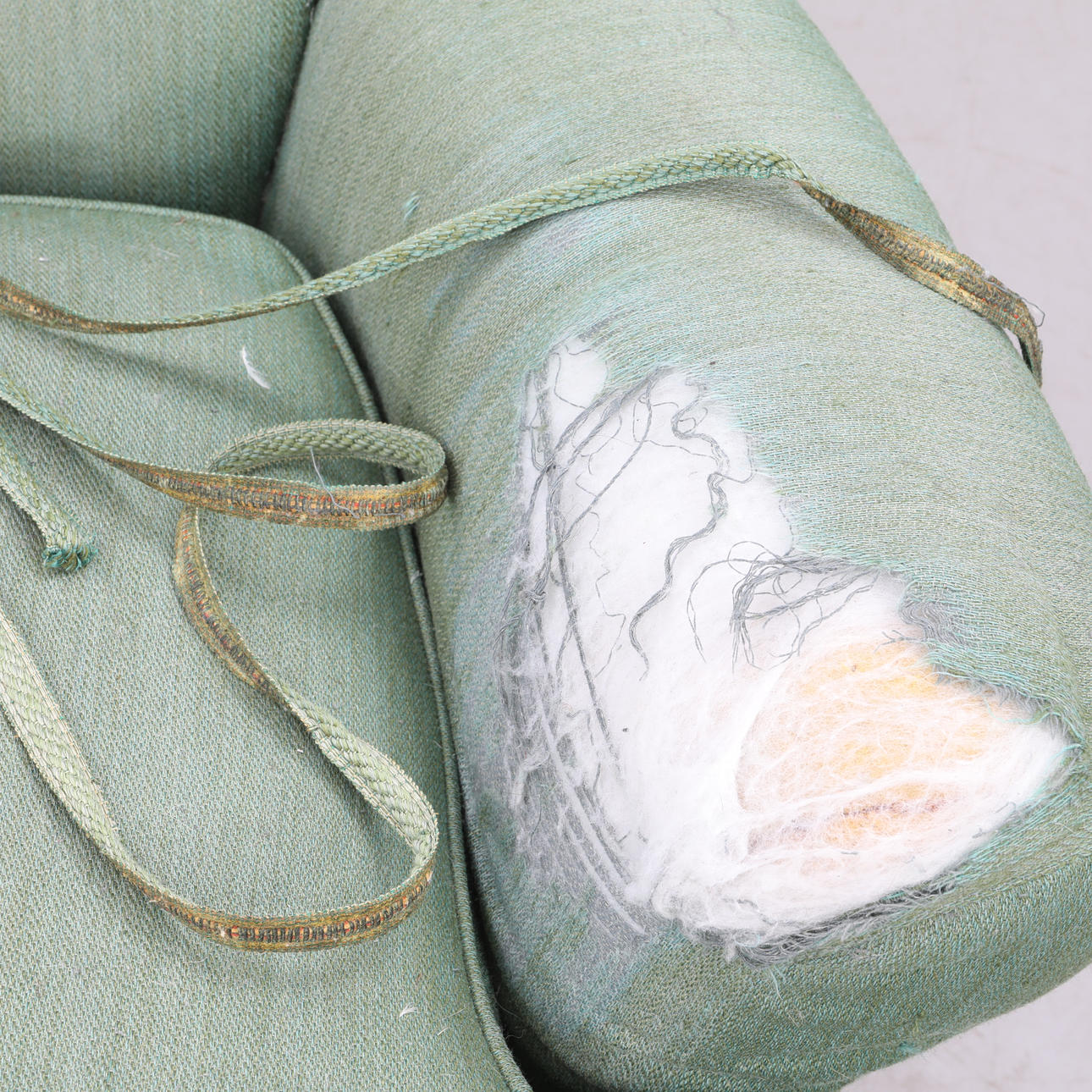 Brugsslitage, ridser & mærker, skader, kantbånd løst, renoveringsobjekt.