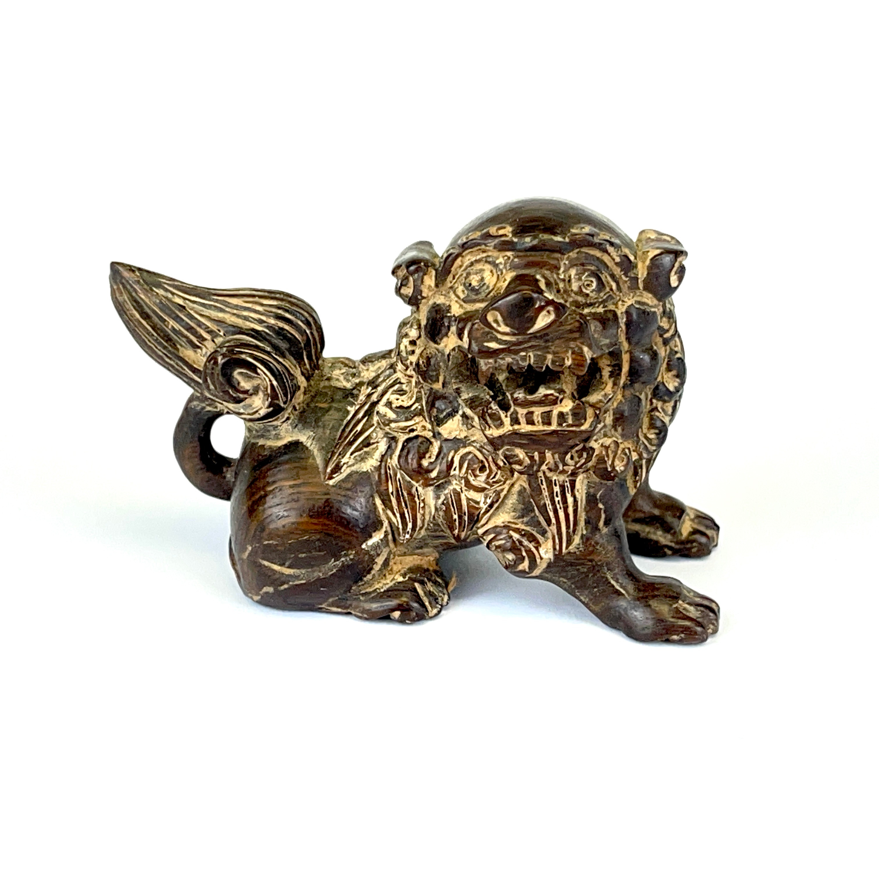 2914851. Udskåret LØVE-HUND FIGUR.