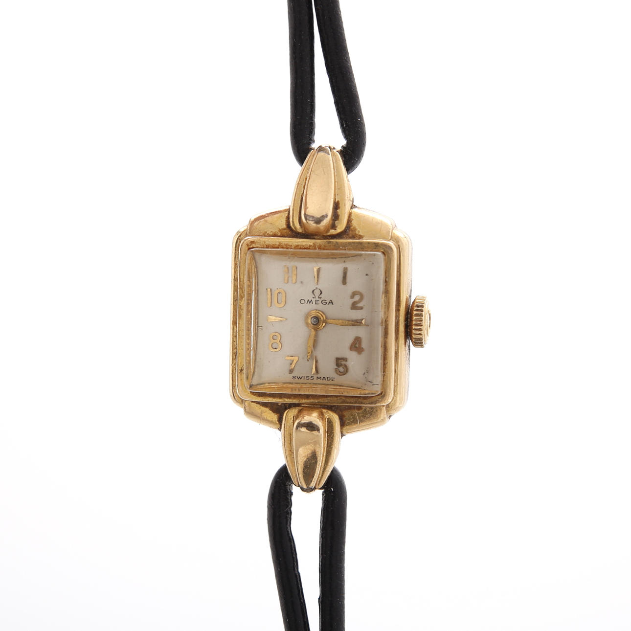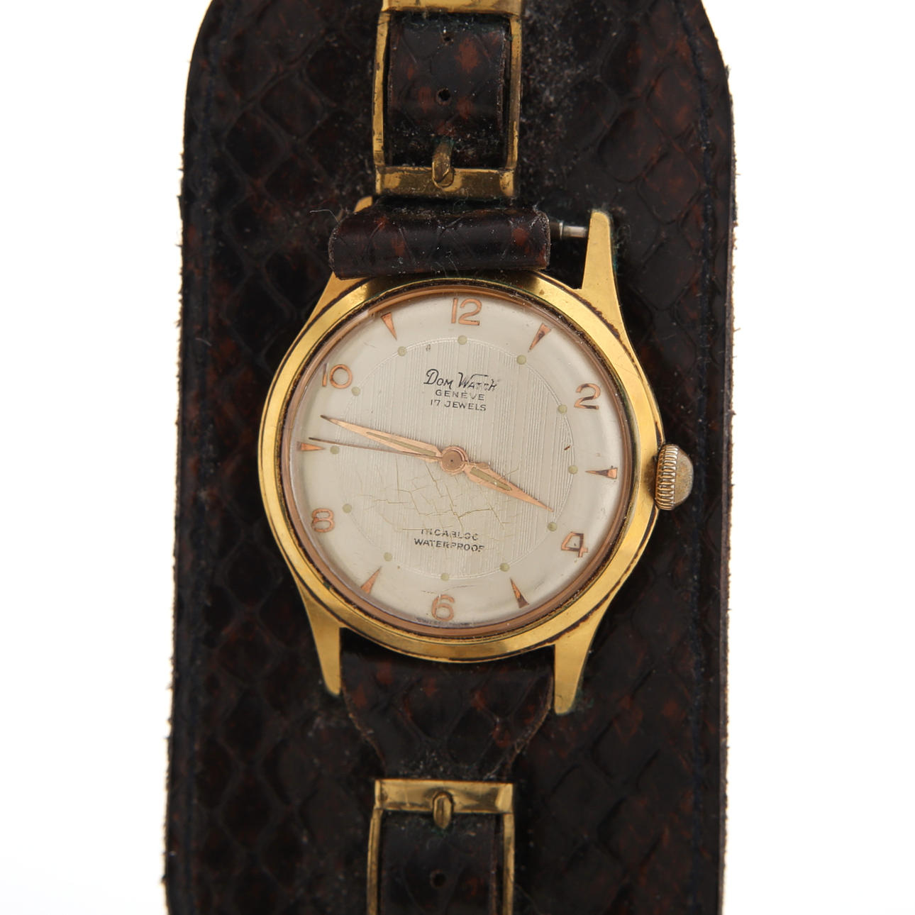 Dom Watch, kunstlæder lænke, diameter 33 mm. 2 Omega, dobbelt guld, bredde ca 15 mm.