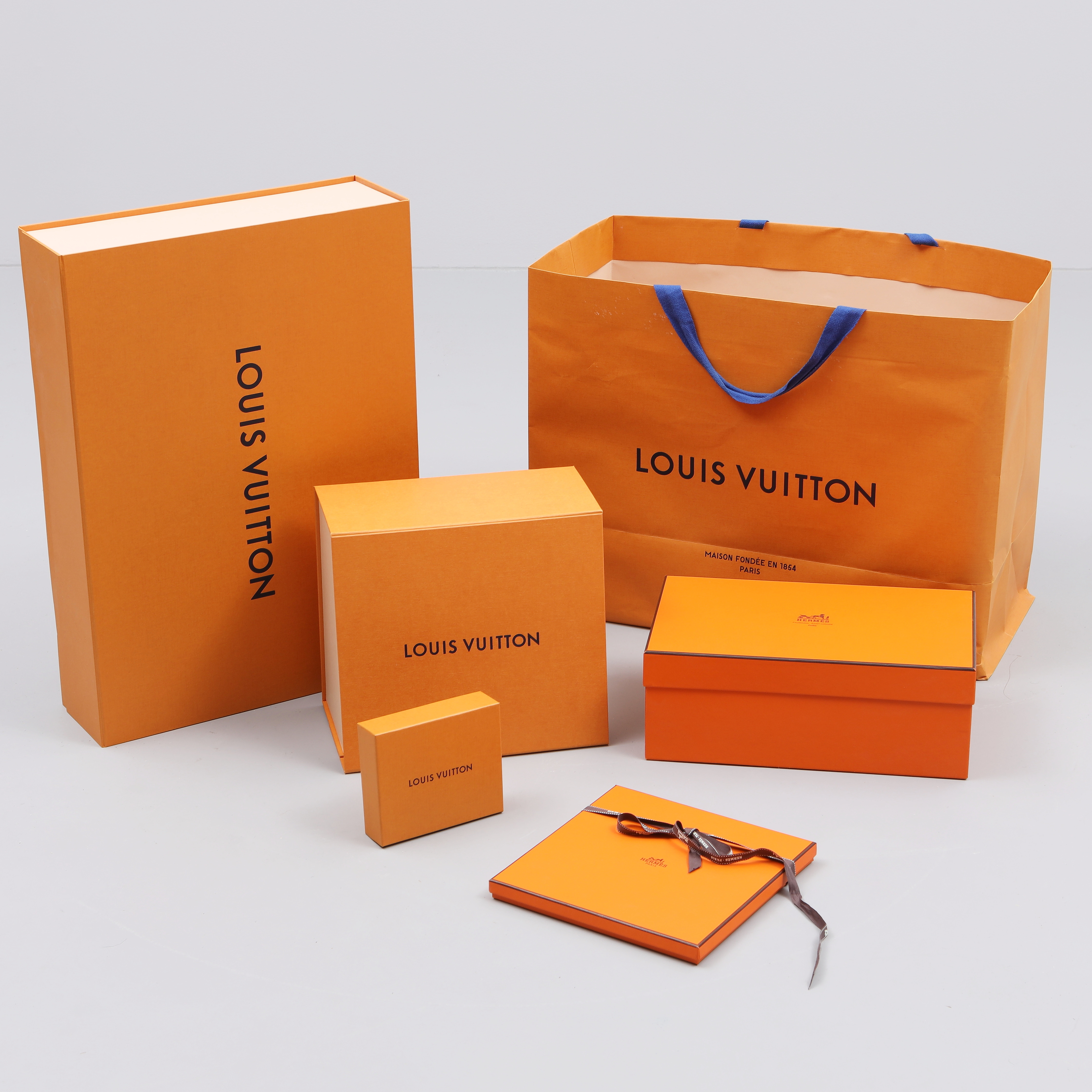 2922221. HERMÉS æsker, 2 stk og LOUIS VUITTON æsker, 3 stk.