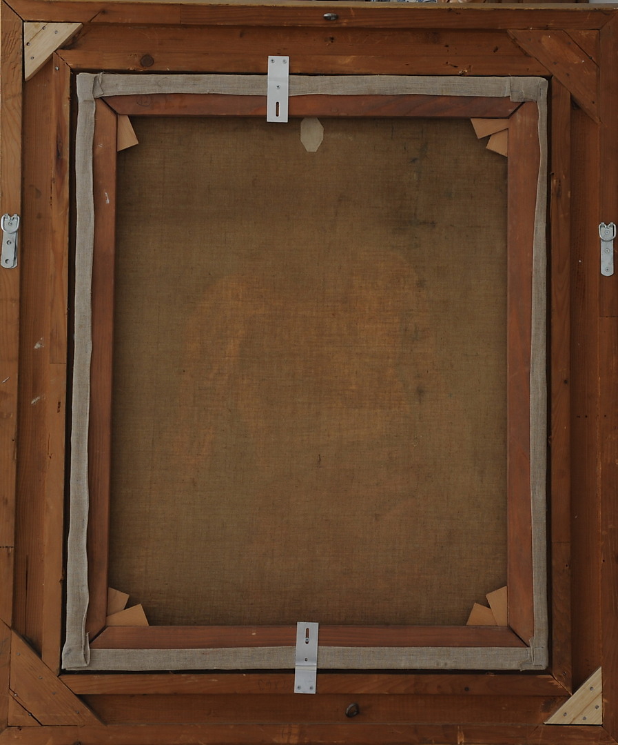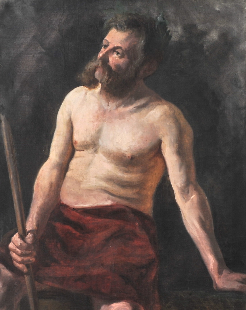 293014. MALER DES 19./20. JHD.`S (DEUTSCH). "Poserende mand med rødt lændeklæde og skæg".