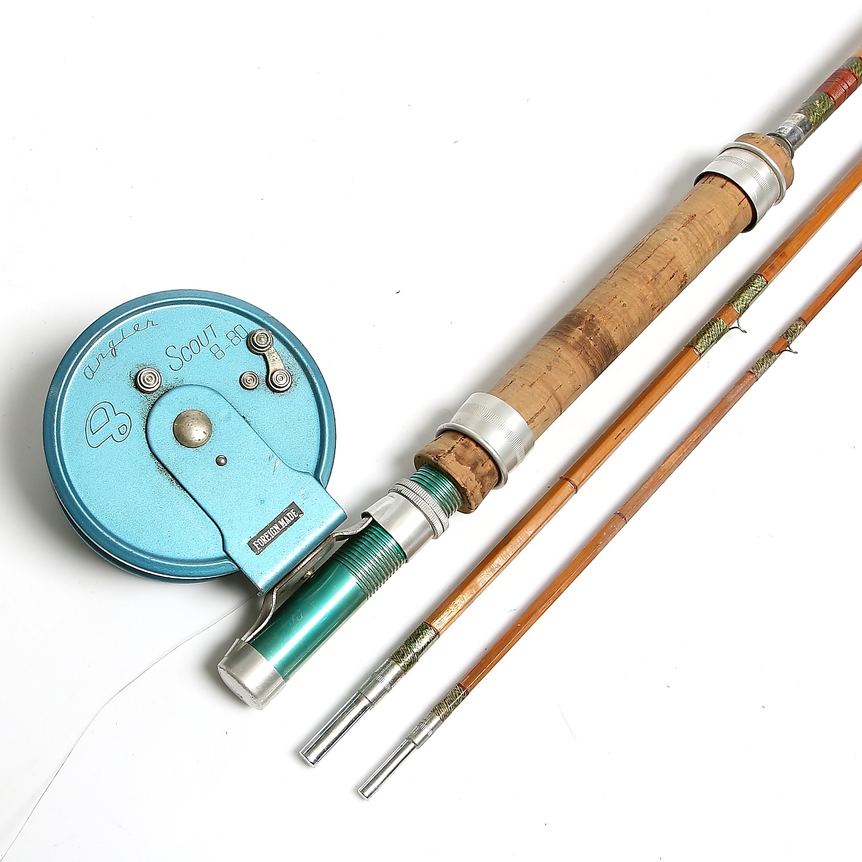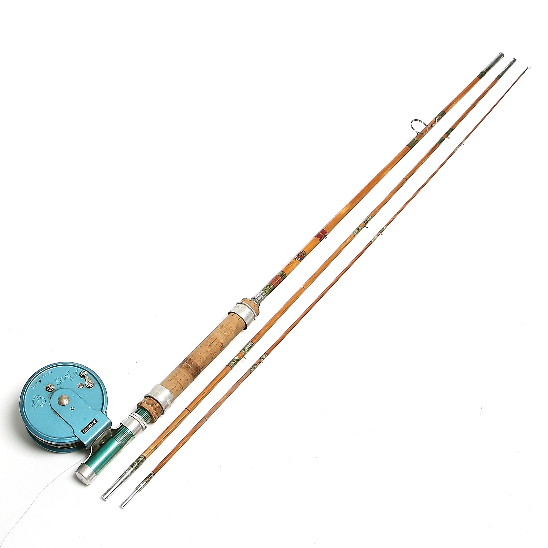 293431. FLYESTANG med RULLE, splitcane, Gold Tiger. 1900-tallet.