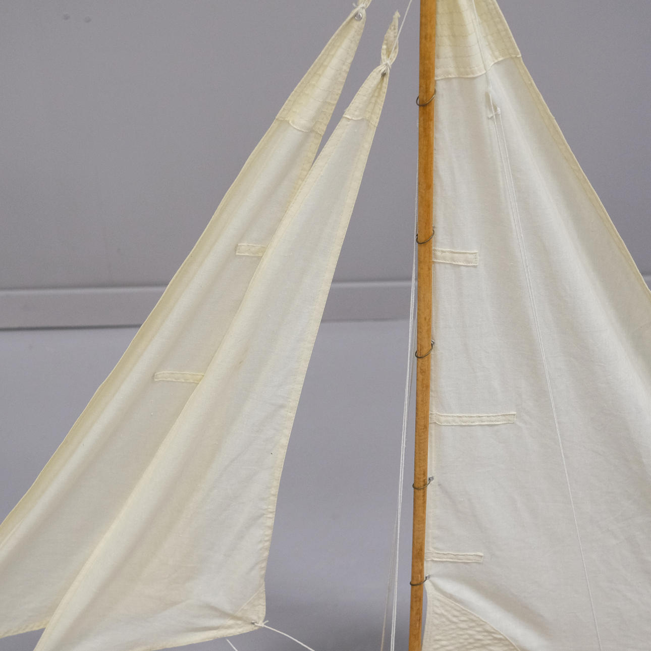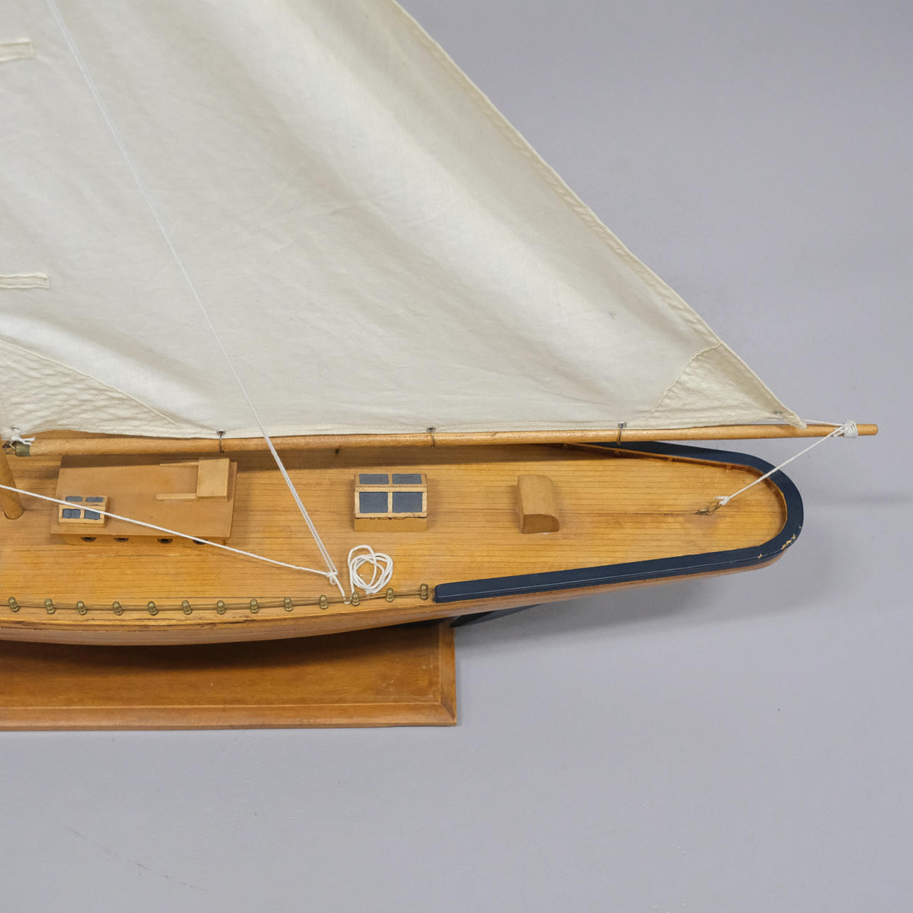 Model af sejlskib i træ. Længde: ca 110 cm. Højde: ca 105 cm.