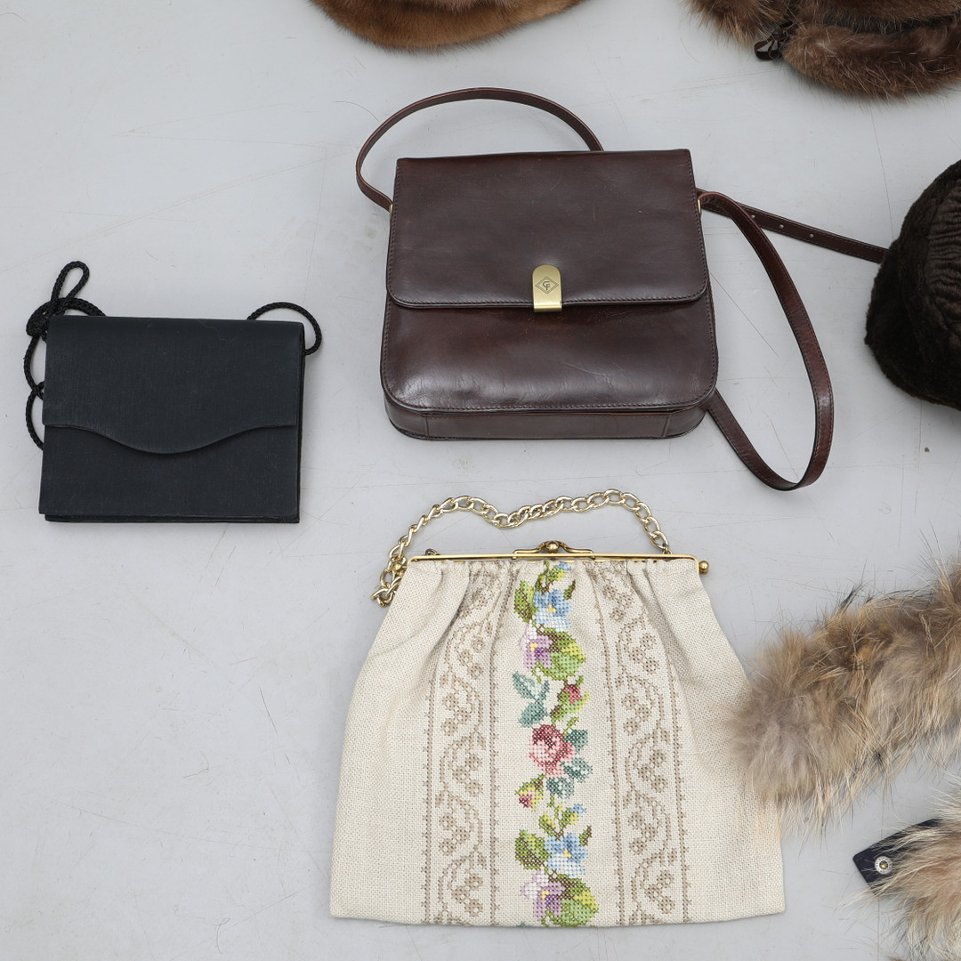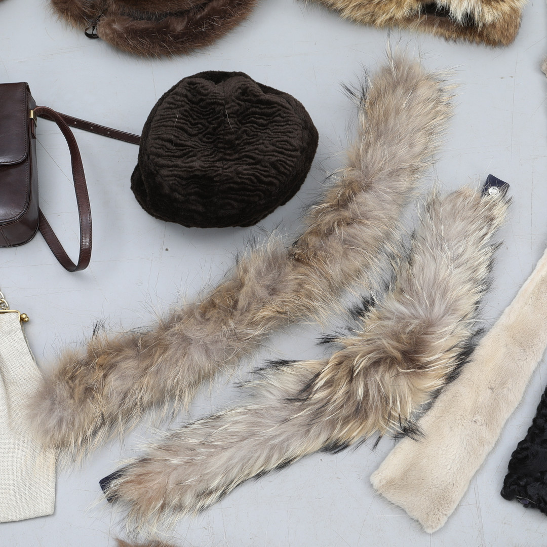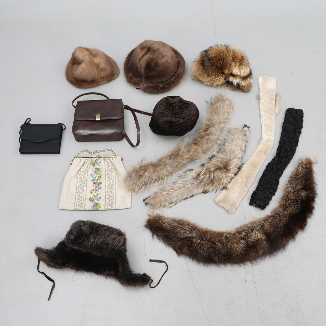 2936854. TILBEHØR, damer, pelskraver, pelshuer, tasker mm.