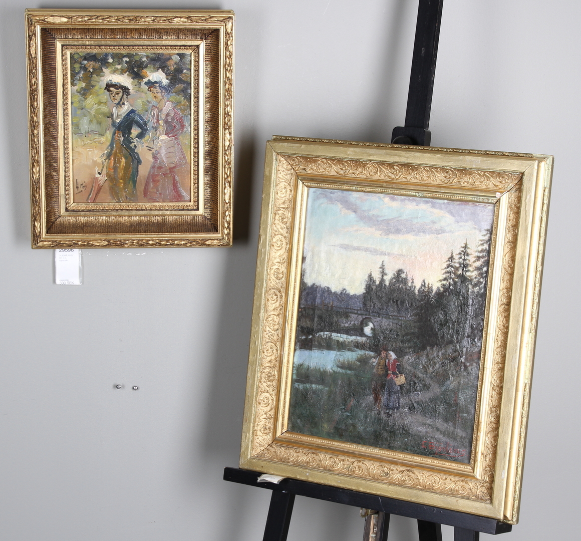 29596. OLIEMALERIER, 2 stk, sign.