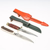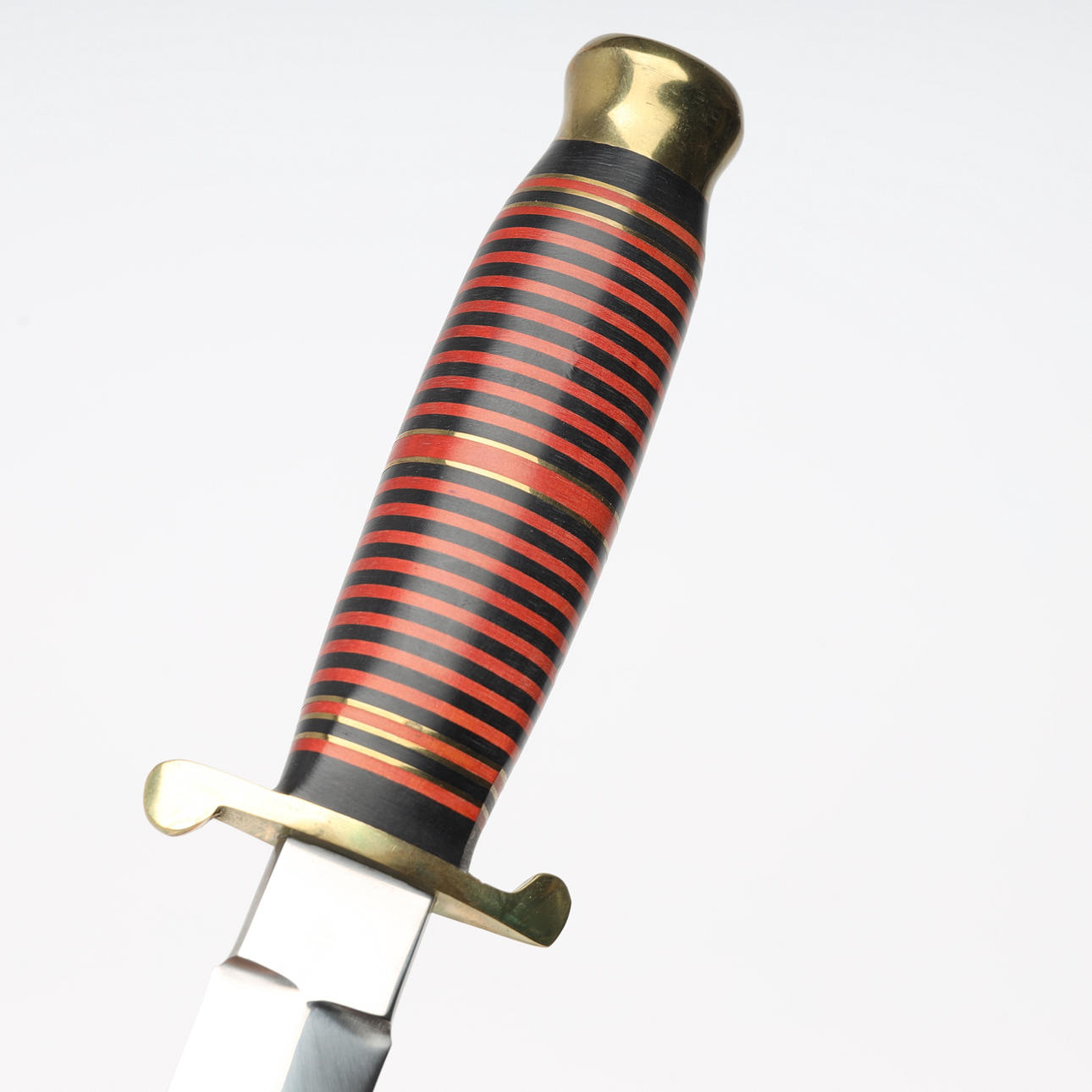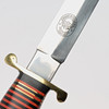 Kniv, stribet skaft, knivlængde ca 23 cm, total længde inkl. skede 27 cm.