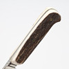 Kniv, skaft på horn, knivlængde 24 cm, total længde inkl. skede 25 cm.