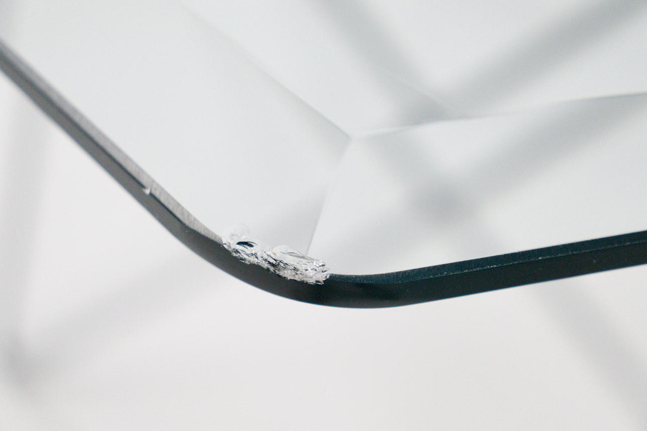 Aldersrelateret stand med brugsspor, en afslag i glasset (lille).