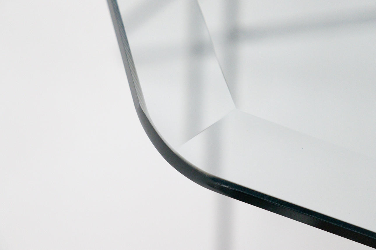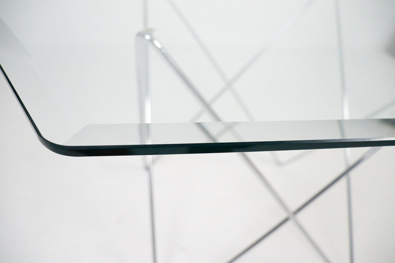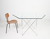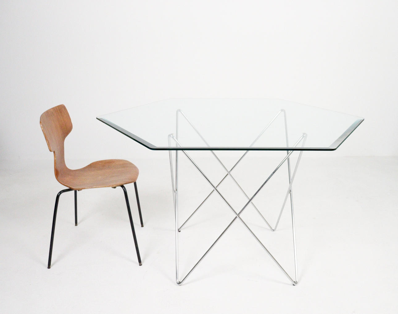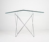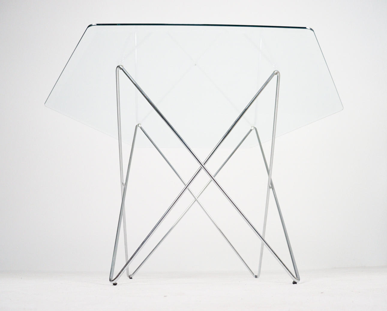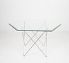 Trådbord fra 1970'erne, metalkonstruktion, løs sekskantet glasplade, mål ca.: H. 74 cm, B. 114 cm, D. 114 cm.