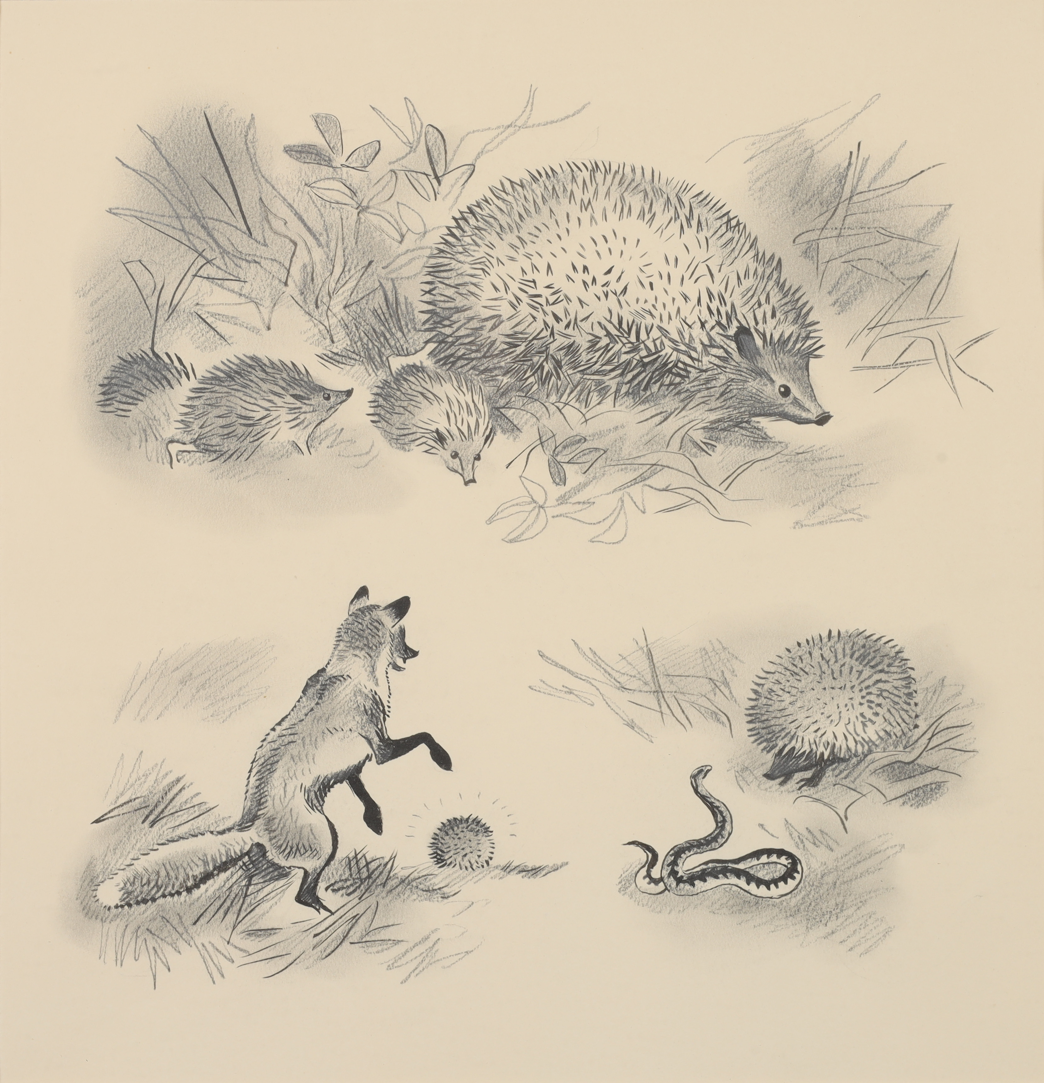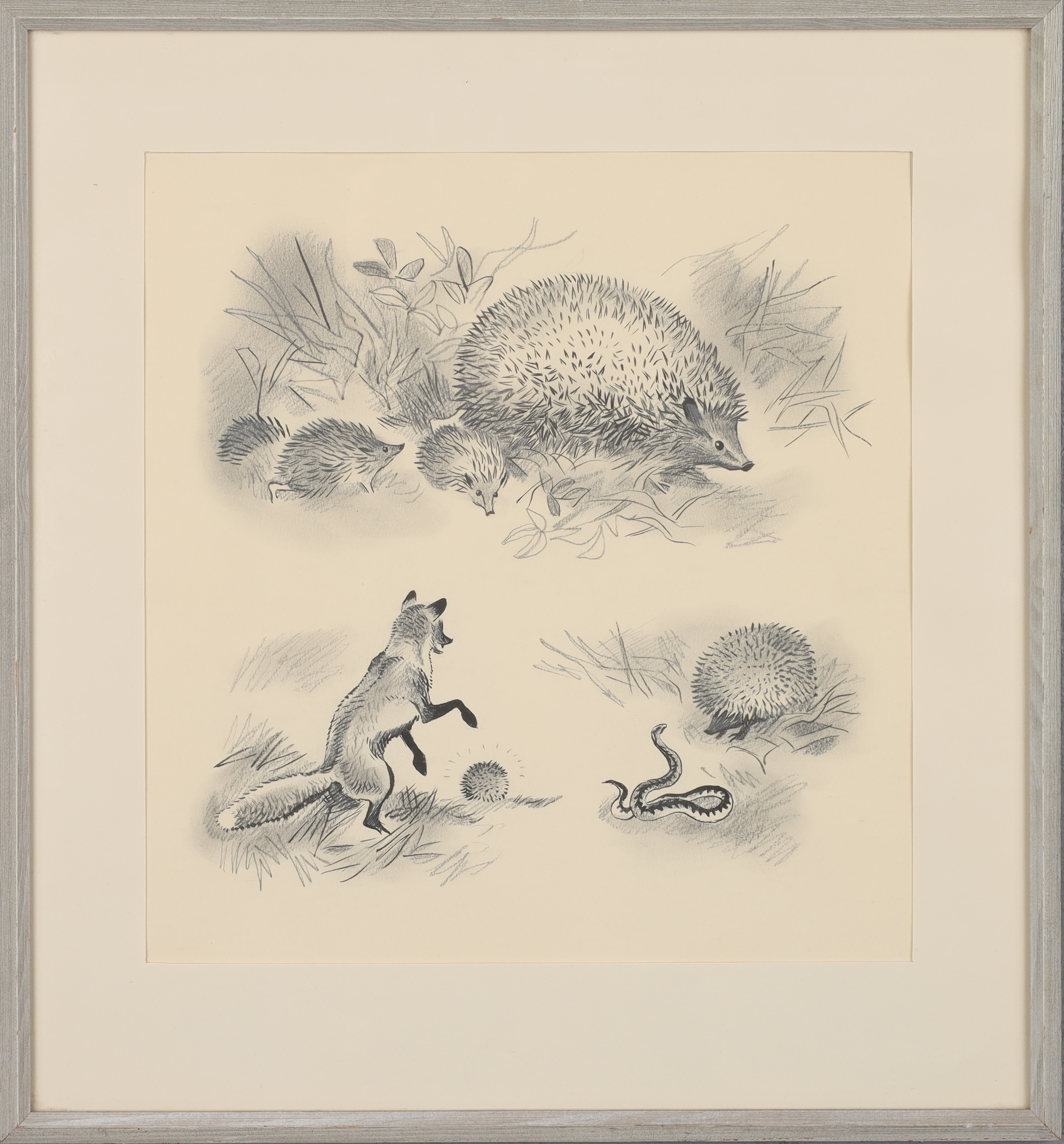 2964449. GUNNAR BRUSEWITZ. Pindsvin, tegning, usigneret.