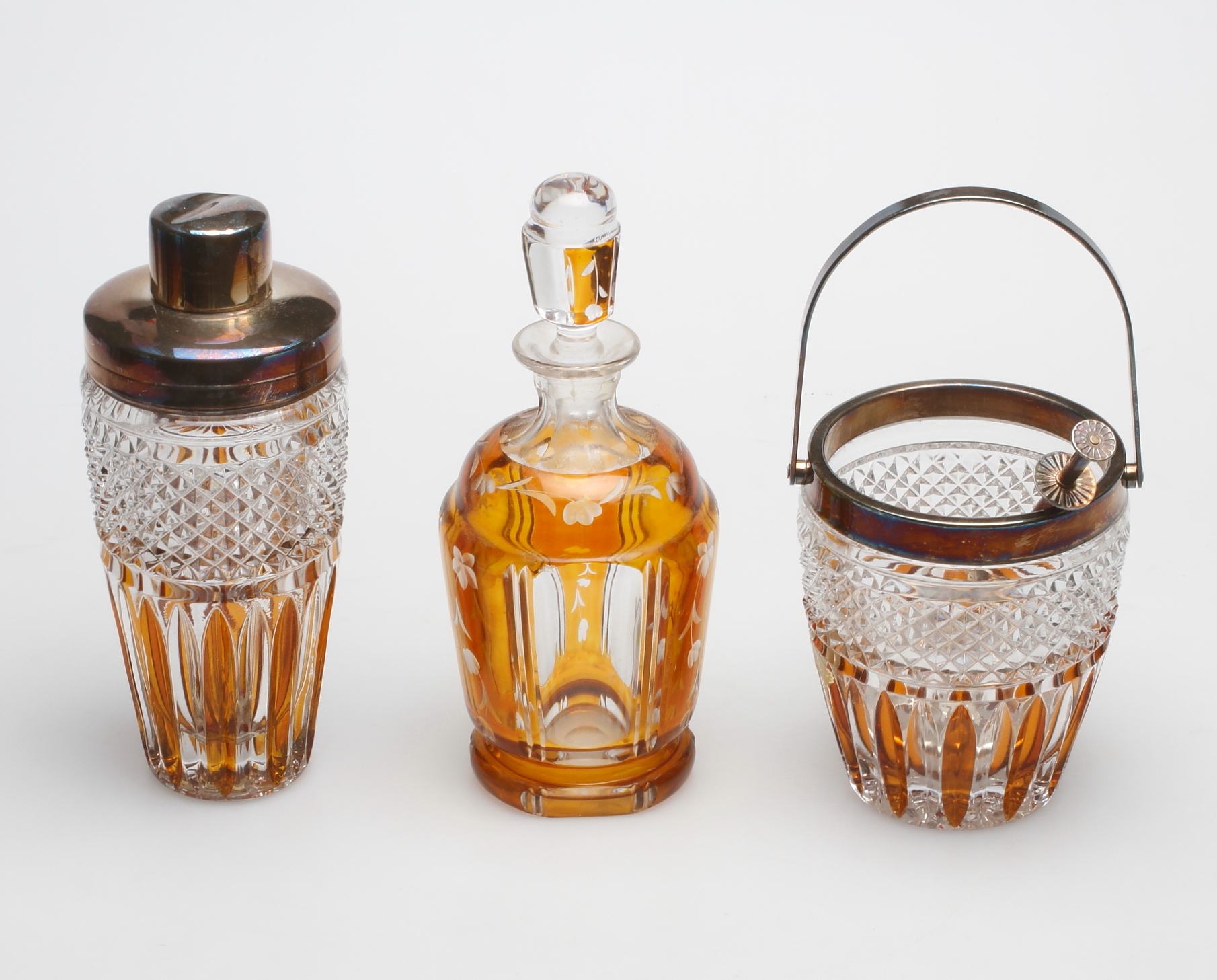 296680. GLASOBJEKTER, 3 dele, 1900-tallet.