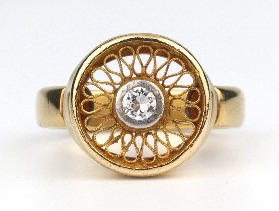 2967711. BRILLIANT RING, 750 gult guld, ring str. 49.