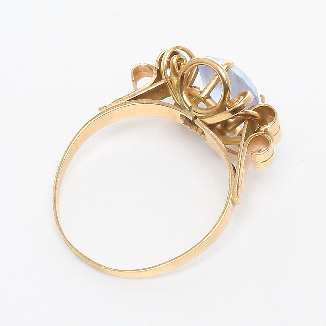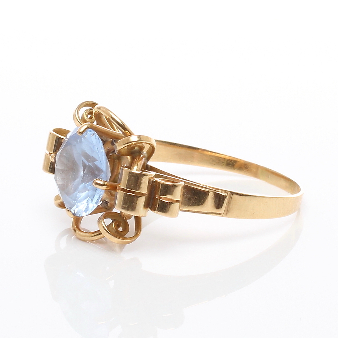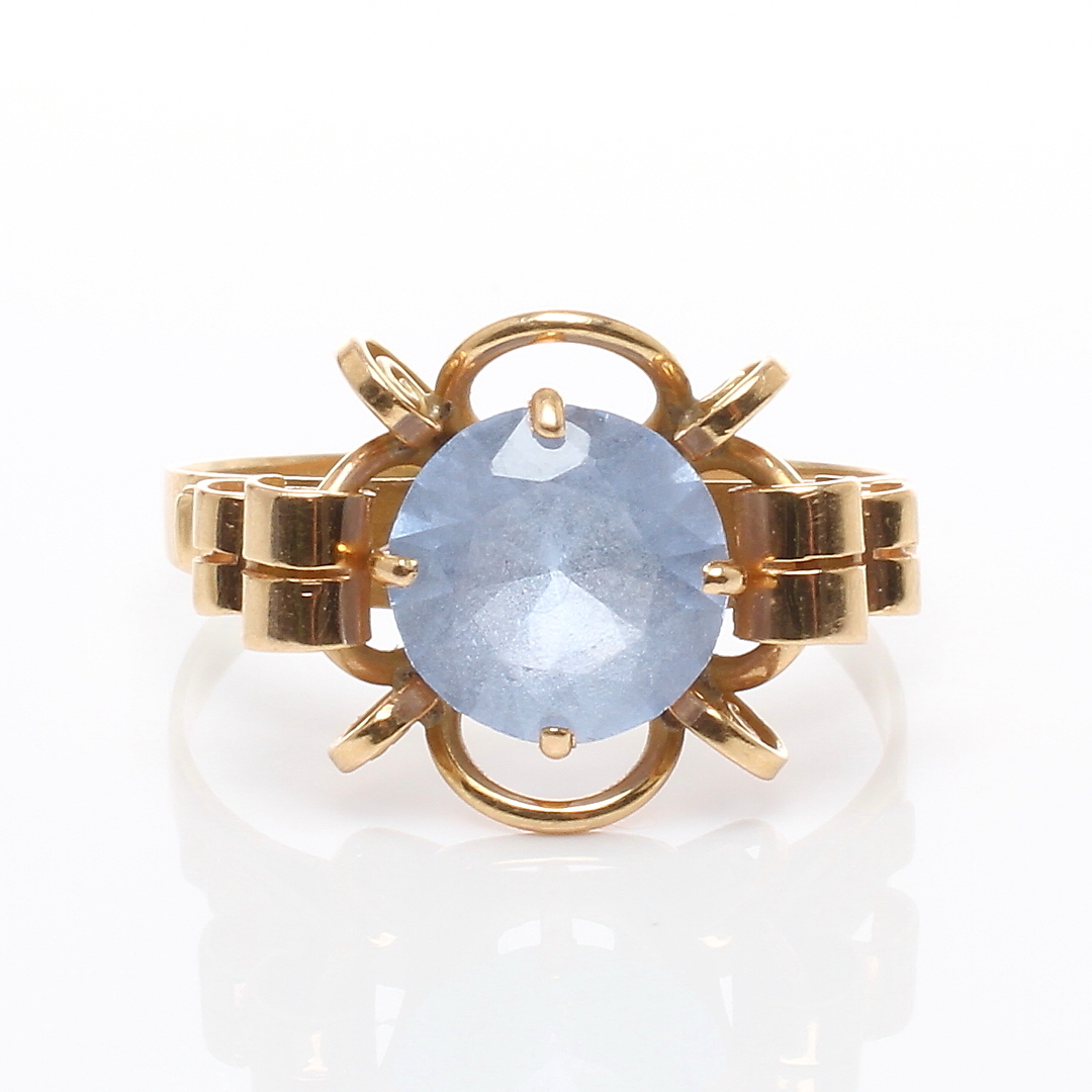 296915. RING 18k guld med blå sten, 1900-tallet.