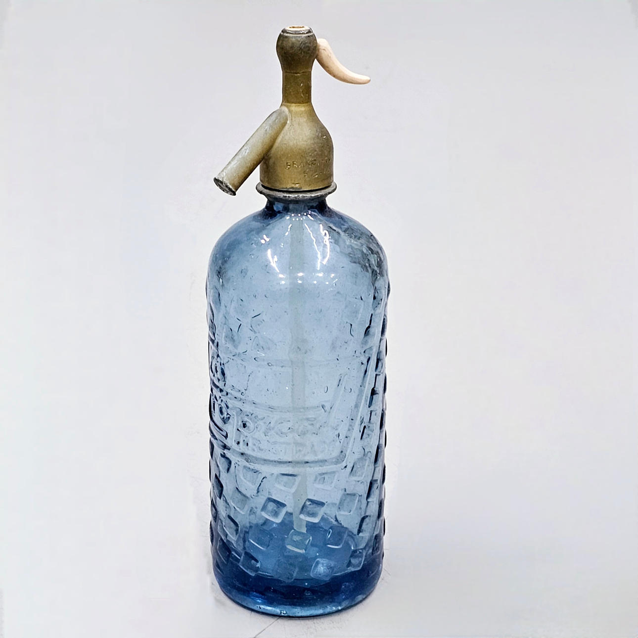 FIRE ANTIKKE SIFONER I GLAS OG METAL.