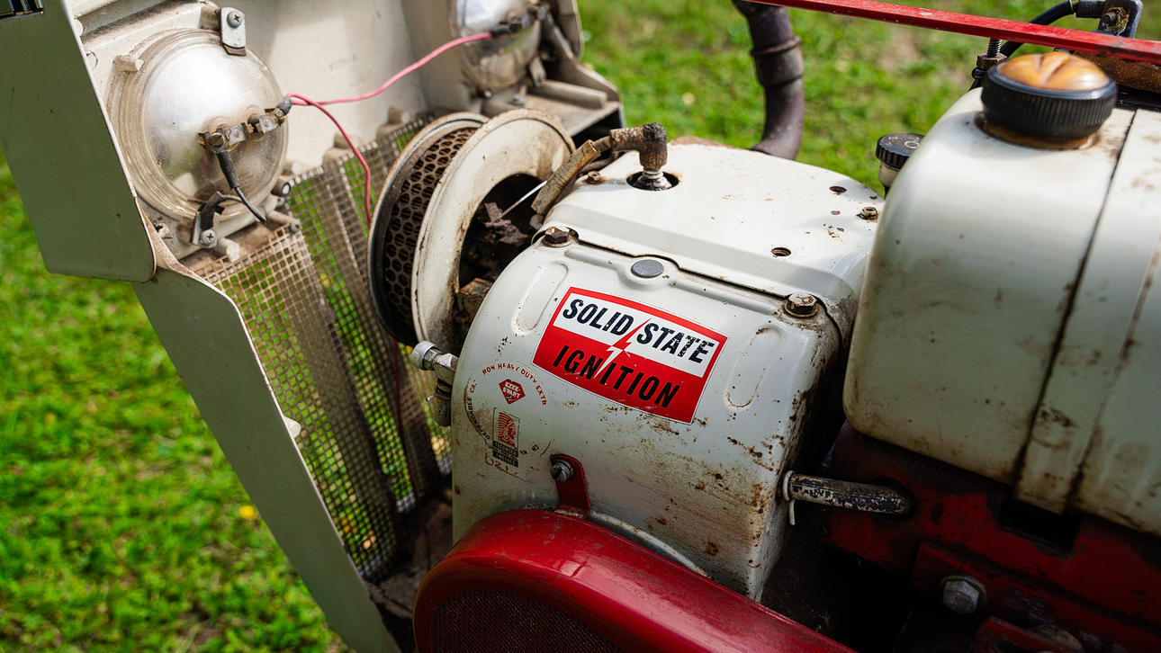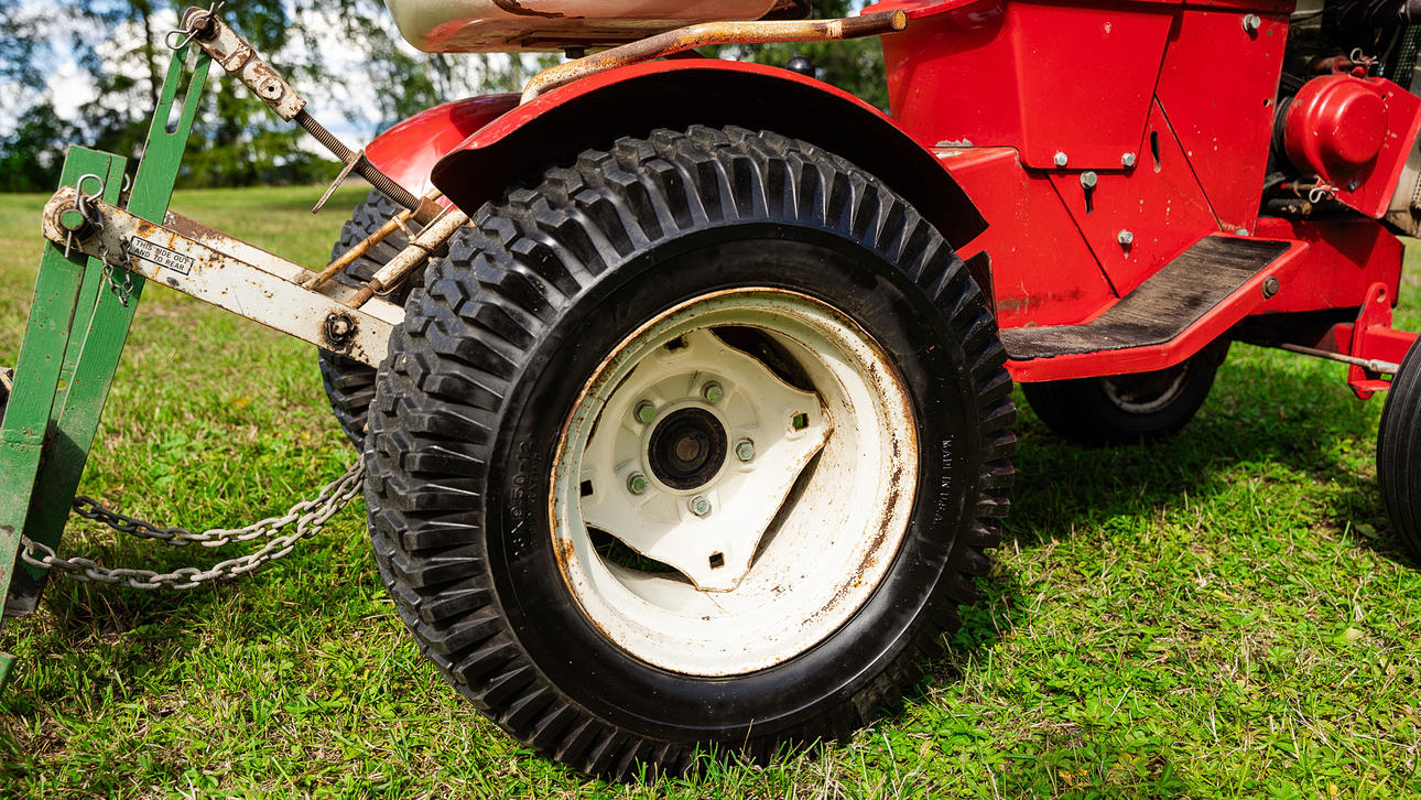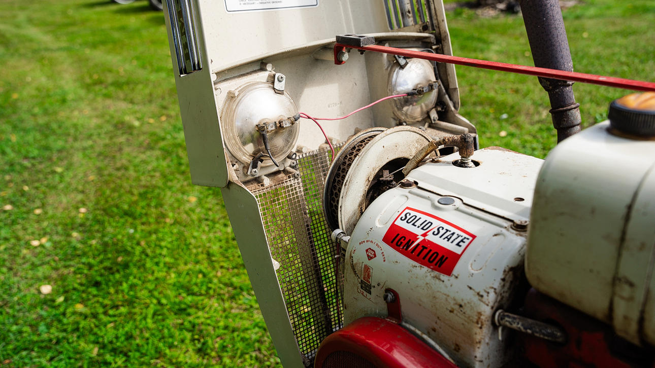 Serienummer: 1064 Starter og går 3-punkts med Push Bar Ukrudtsrive følger (hjemmelavet) Original Single Cut Plow følger, Roper Corp. USA, model nr. TT4131R0 Længde 170 cm.