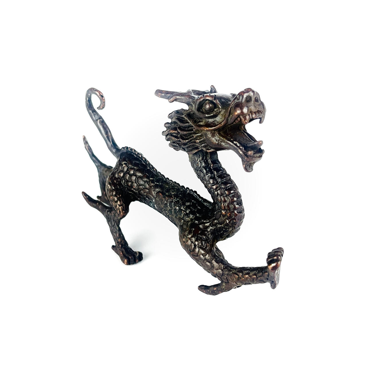 En japansk bronzefigur af en drage, L. 10,6 cm.