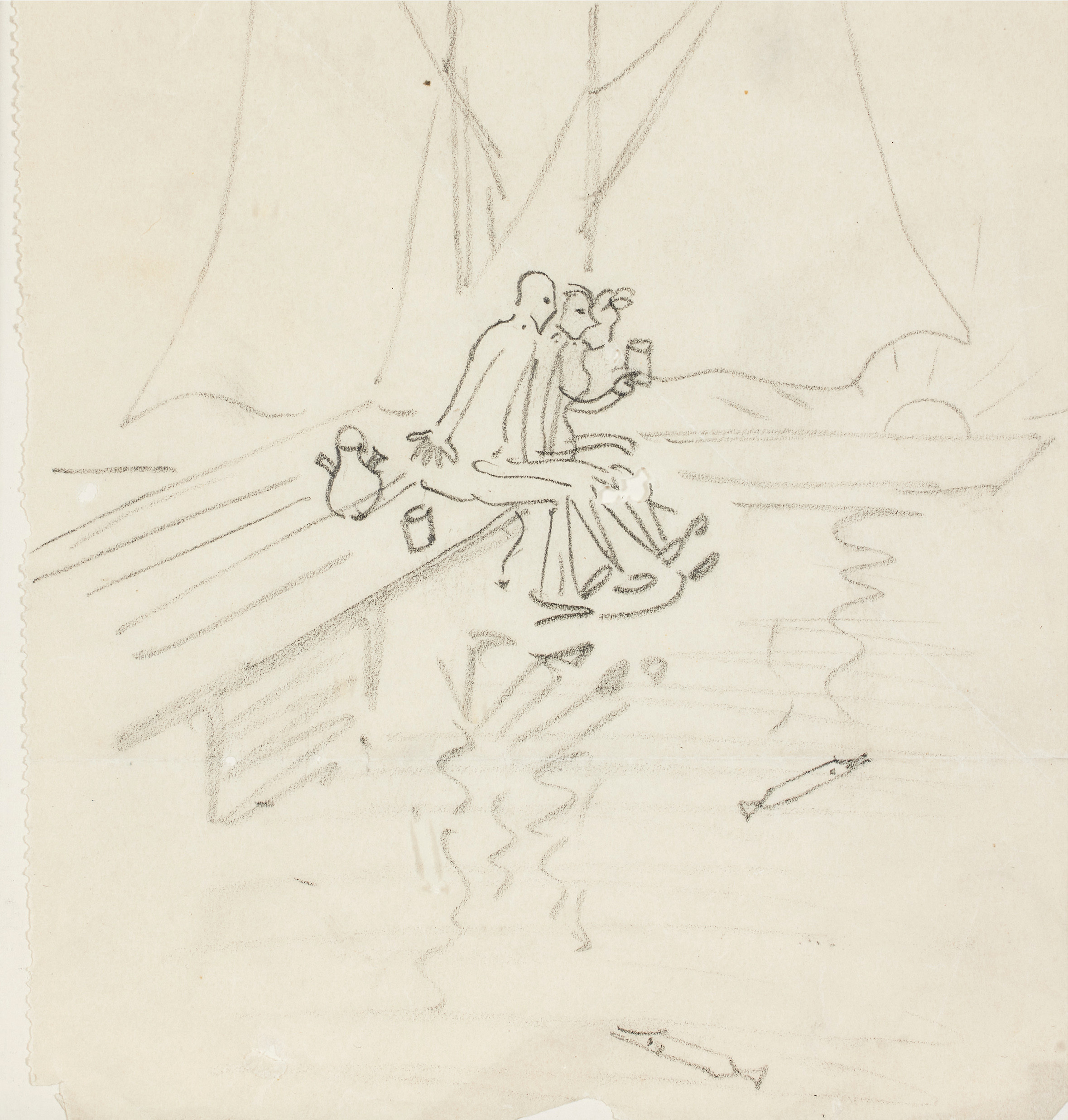 37. 2977768. J.A.G. (JOHAN AXEL GUSTAF) ACKE. "På molen, Morotsvik" - tilfældig tegning.