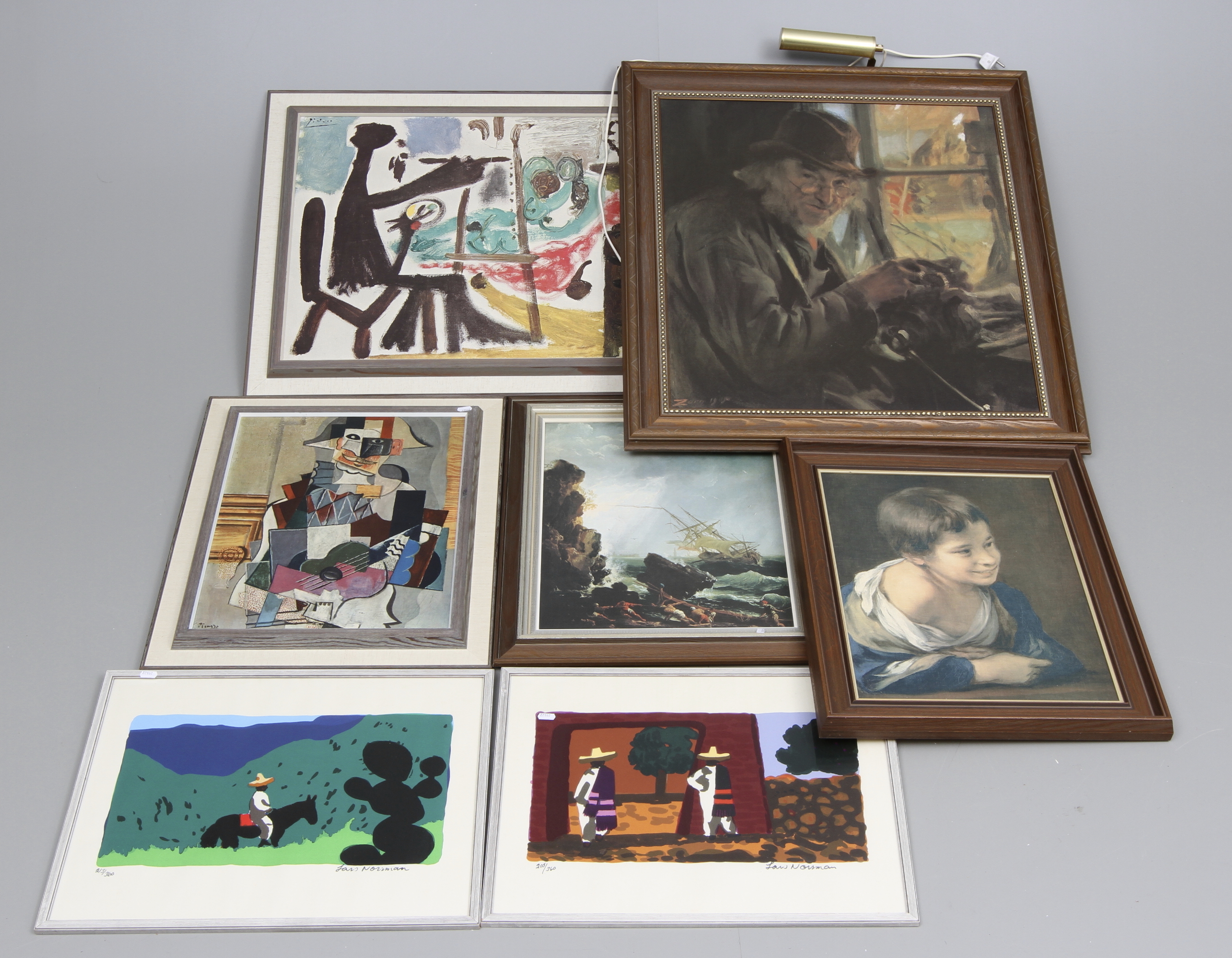 29822. BORDFEST, 7 stk, tryk og litografier.