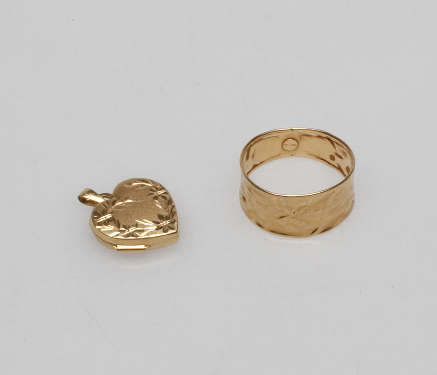 298578. RING OG VEDhæng, 18k guld, vægt ca. 3,4 gr.