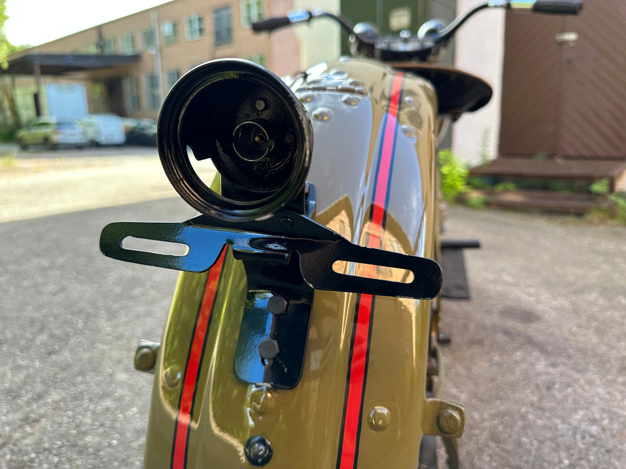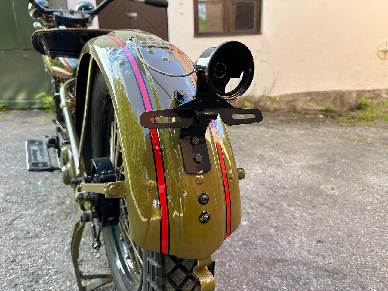 Modelår: 1930 Stelnummer: ingen synlig Motor: 1-cylindret, 500cc, Sideventil Motornummer: 30B1706 Motoren er 500cc, men motornummeret angiver 350cc.