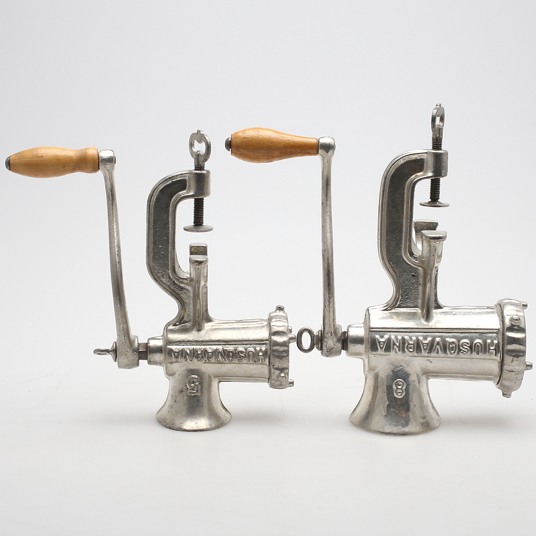 299342. KØDKVÆNNE, 2 stk, og BRØDDÅSER, 2 stk, 1900-tallet.